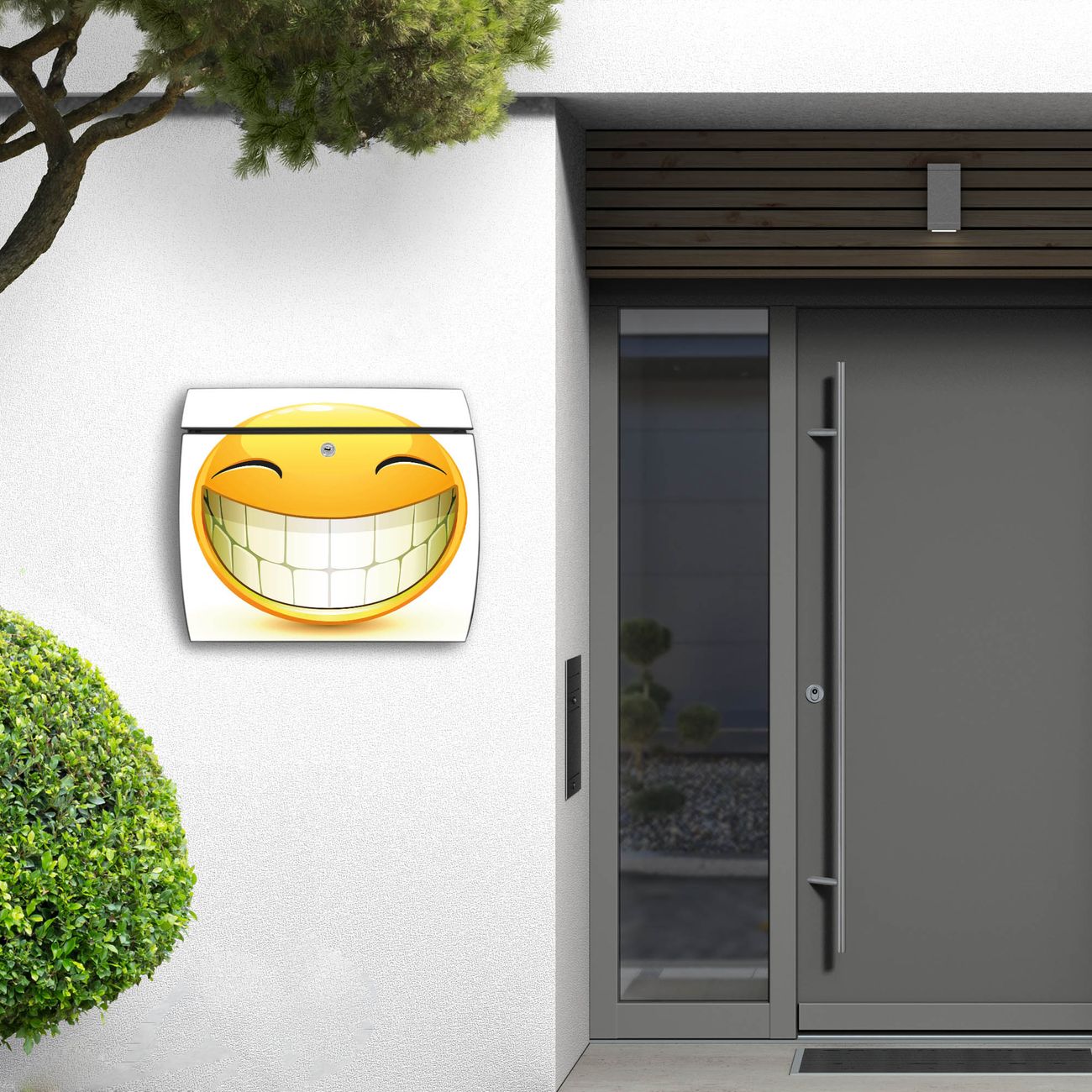 FUNKTION: DESIGN: Das Burg Wächter Modell Toscana mit Motiv Smile hat ein sehr ansprechendes und zeitloses Design und ist besonderes wetterfest. Heben Sie Sich von der tristen grauen Masse ab, ohne auf Funktionalität zu verzichten. Wir bieten Ihnen ebenfalls Namensschilder, bereits beschriftet oder frei zu beschriften, und verschiedene selbst gestaltete Bitte-Keine-Werbung-Aufkleber. DETAILS: Der Postkasten besteht aus vollflächig verzinktem Stahl welcher in Anthrazit oder Weiß lackiert wurde oder aus Edelstahl (je nach gewählter Variante). Das Motiv besteht aus einer wetter- und UV-festen Folie, die mit einem Schutzlaminat überzogen ist, durch die Ihren Briefkasten zusätzlich vor Kratzern geschützt ist und auf den Briefkasten kaschiert wurde. Sie erhalten zu Ihrem neuen Design Briefkasten 2 Schlüssel sowie das passende Montagematerial. BANJADO: Ihr Briefkasten wird von Burg Wächter in Deutschland gefertigt und in unserer kleinen Manufaktur von Hand veredelt. Die Motivfolie ist lösungsmittelfrei und schutzlaminiert, dies sorgt für einen langen Halt. Wir legen großen Wert auf die Verbindung von Funktionalität und Design. Sie erhalten besondere Handarbeit aus Sachsen und Made in Germany.