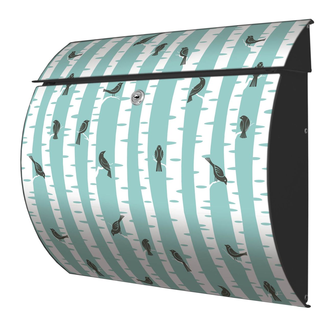 Der geschwungene Burg Wächter Briefkasten Toscana mit Motiv Stare Und Birken bietet Ihnen mit seinem großen Fassungsvermögen genügend Platz auch für große A4 Sendungen. Auf Wunsch können Sie bei uns den passenden Standfuß bestellen und so aus dem Wandbriefkasten einen Standbriefkasten machen. Der integrierte Öffnungsstopp ermöglicht eine einfache Handhabung beim Entnehmen der Post.