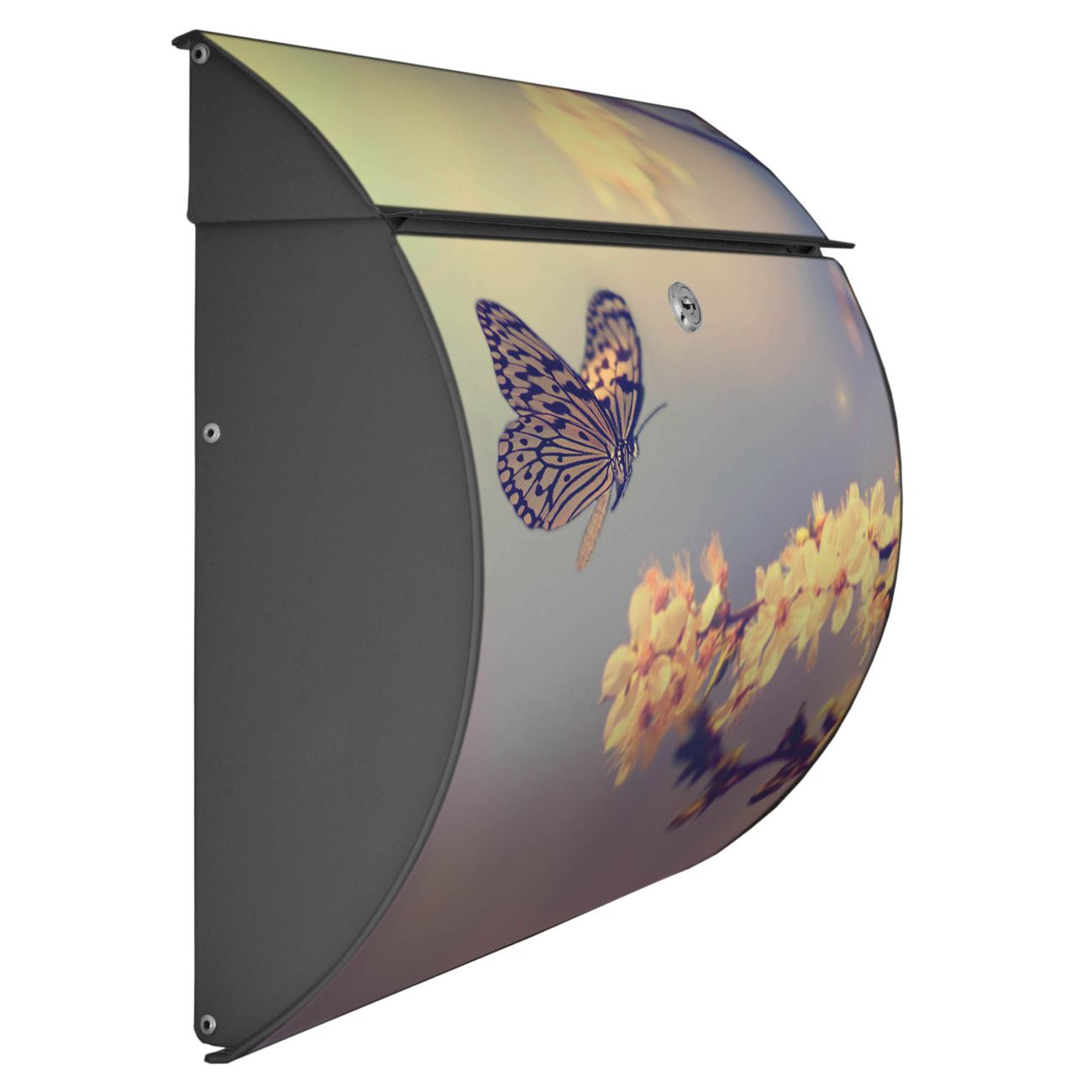 FUNKTION: DESIGN: Das Burg Wächter Modell Toscana mit Motiv Tag Im Mai hat ein sehr ansprechendes und zeitloses Design und ist besonderes wetterfest. Heben Sie Sich von der tristen grauen Masse ab, ohne auf Funktionalität zu verzichten. Wir bieten Ihnen ebenfalls Namensschilder, bereits beschriftet oder frei zu beschriften, und verschiedene selbst gestaltete Bitte-Keine-Werbung-Aufkleber. DETAILS: Der Postkasten besteht aus vollflächig verzinktem Stahl welcher in Anthrazit oder Weiß lackiert wurde oder aus Edelstahl (je nach gewählter Variante). Das Motiv besteht aus einer wetter- und UV-festen Folie, die mit einem Schutzlaminat überzogen ist, durch die Ihren Briefkasten zusätzlich vor Kratzern geschützt ist und auf den Briefkasten kaschiert wurde. Sie erhalten zu Ihrem neuen Design Briefkasten 2 Schlüssel sowie das passende Montagematerial. BANJADO: Ihr Briefkasten wird von Burg Wächter in Deutschland gefertigt und in unserer kleinen Manufaktur von Hand veredelt. Die Motivfolie ist lösungsmittelfrei und schutzlaminiert, dies sorgt für einen langen Halt. Wir legen großen Wert auf die Verbindung von Funktionalität und Design. Sie erhalten besondere Handarbeit aus Sachsen und Made in Germany.