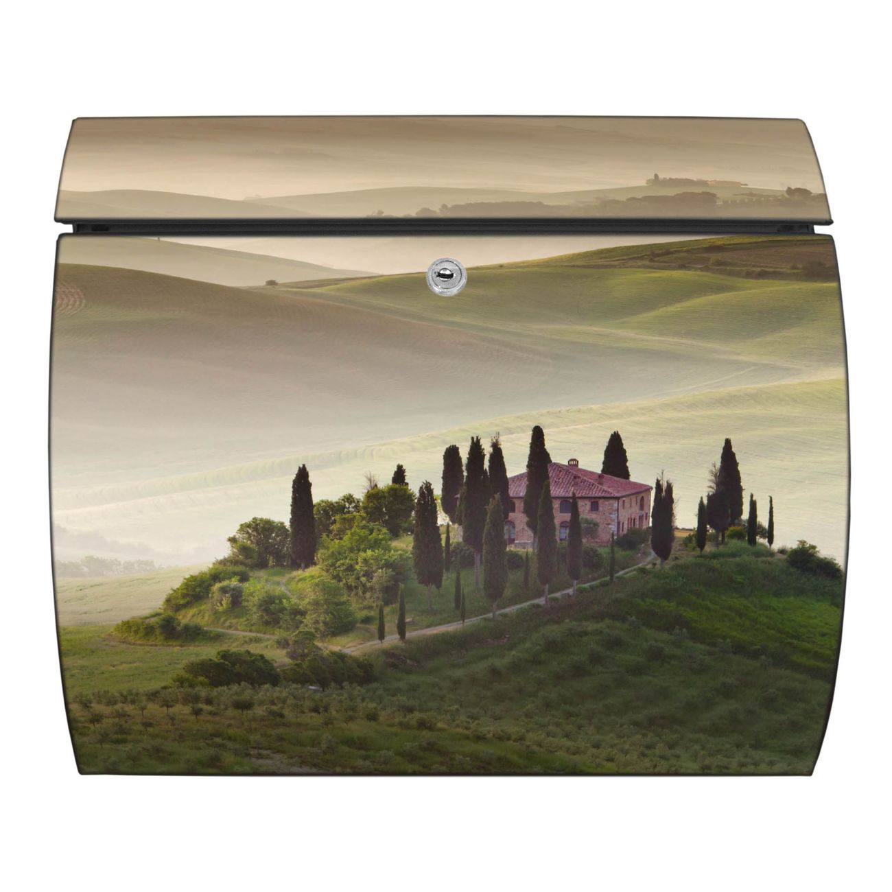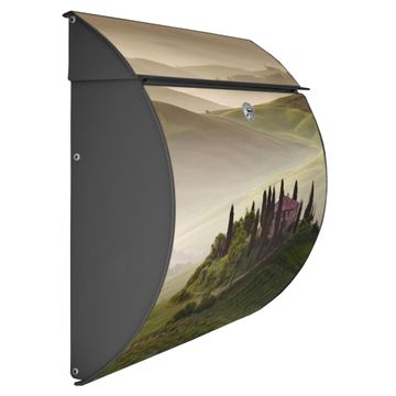 Der geschwungene Burg Wächter Briefkasten Toscana mit Motiv Toscana bietet Ihnen mit seinem großen Fassungsvermögen genügend Platz auch für große A4 Sendungen. Auf Wunsch können Sie bei uns den passenden Standfuß bestellen und so aus dem Wandbriefkasten einen Standbriefkasten machen. Der integrierte Öffnungsstopp ermöglicht eine einfache Handhabung beim Entnehmen der Post.