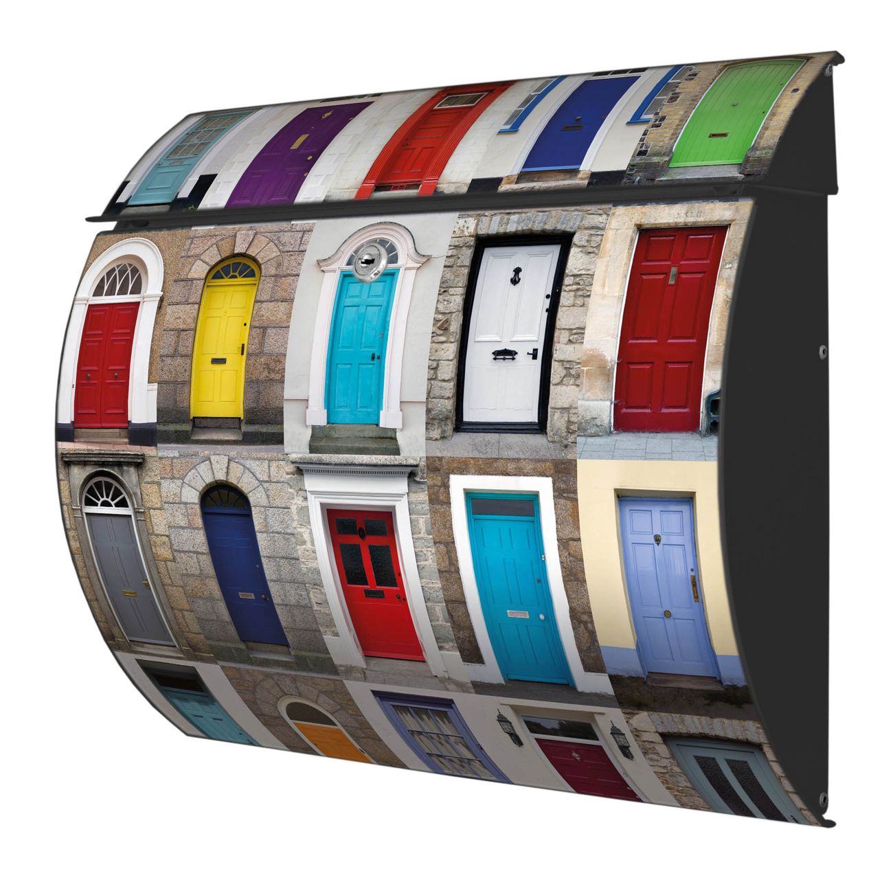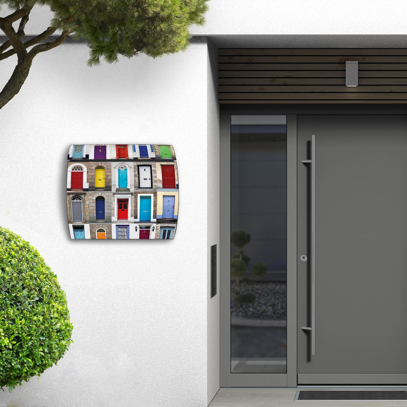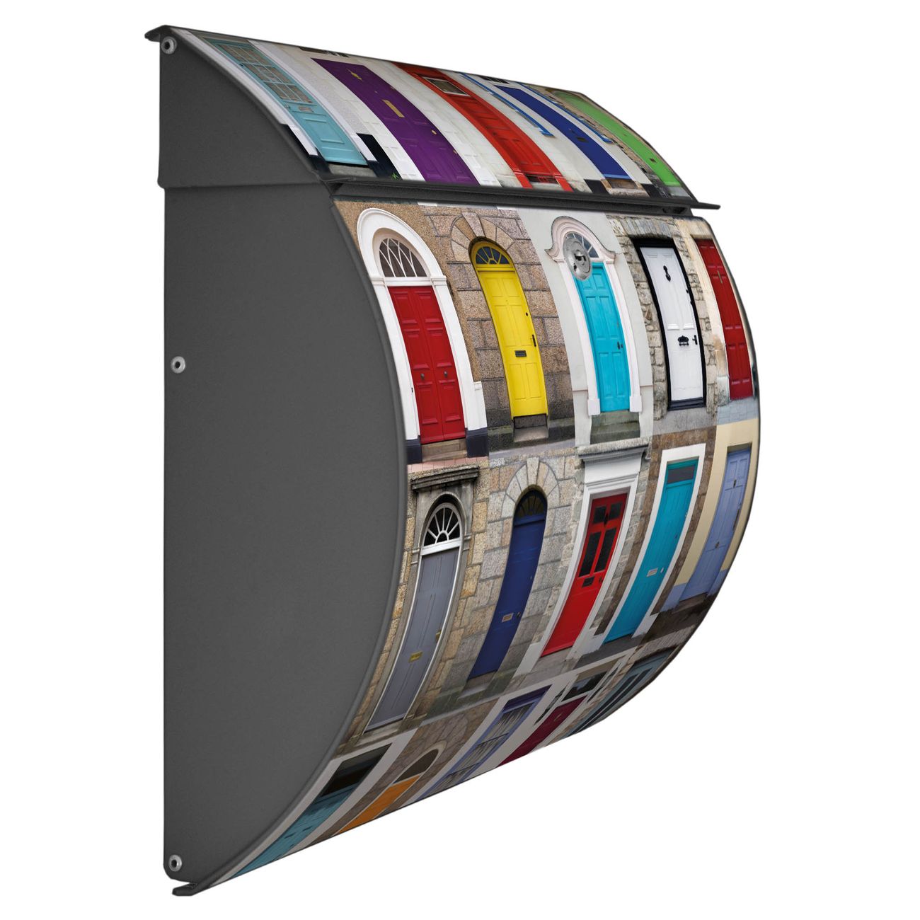 FUNKTION: DESIGN: Das Burg Wächter Modell Toscana mit Motiv Türen hat ein sehr ansprechendes und zeitloses Design und ist besonderes wetterfest. Heben Sie Sich von der tristen grauen Masse ab, ohne auf Funktionalität zu verzichten. Wir bieten Ihnen ebenfalls Namensschilder, bereits beschriftet oder frei zu beschriften, und verschiedene selbst gestaltete Bitte-Keine-Werbung-Aufkleber. DETAILS: Der Postkasten besteht aus vollflächig verzinktem Stahl welcher in Anthrazit oder Weiß lackiert wurde oder aus Edelstahl (je nach gewählter Variante). Das Motiv besteht aus einer wetter- und UV-festen Folie, die mit einem Schutzlaminat überzogen ist, durch die Ihren Briefkasten zusätzlich vor Kratzern geschützt ist und auf den Briefkasten kaschiert wurde. Sie erhalten zu Ihrem neuen Design Briefkasten 2 Schlüssel sowie das passende Montagematerial. BANJADO: Ihr Briefkasten wird von Burg Wächter in Deutschland gefertigt und in unserer kleinen Manufaktur von Hand veredelt. Die Motivfolie ist lösungsmittelfrei und schutzlaminiert, dies sorgt für einen langen Halt. Wir legen großen Wert auf die Verbindung von Funktionalität und Design. Sie erhalten besondere Handarbeit aus Sachsen und Made in Germany.