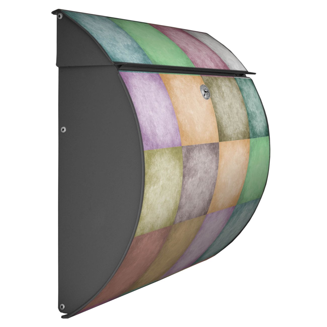 Der geschwungene Burg Wächter Briefkasten Toscana mit Motiv Verwaschene Quadrate bietet Ihnen mit seinem großen Fassungsvermögen genügend Platz auch für große A4 Sendungen. Auf Wunsch können Sie bei uns den passenden Standfuß bestellen und so aus dem Wandbriefkasten einen Standbriefkasten machen. Der integrierte Öffnungsstopp ermöglicht eine einfache Handhabung beim Entnehmen der Post.