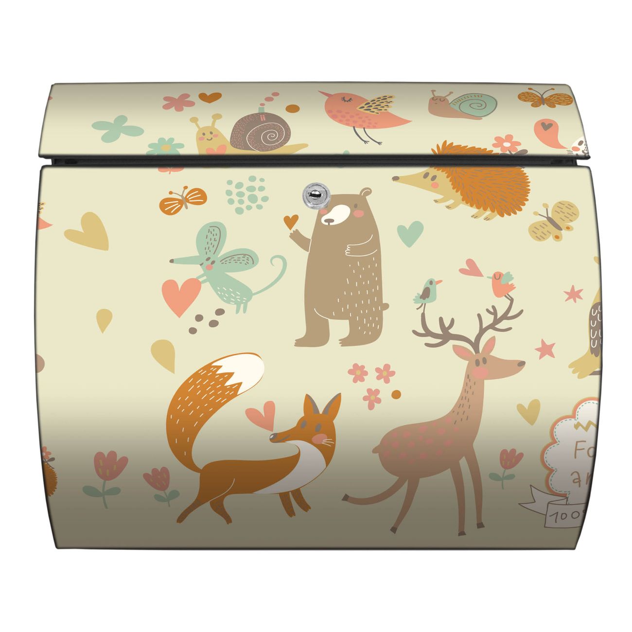 Der geschwungene Burg Wächter Briefkasten Toscana mit Motiv Waldtiere bietet Ihnen mit seinem großen Fassungsvermögen genügend Platz auch für große A4 Sendungen. Auf Wunsch können Sie bei uns den passenden Standfuß bestellen und so aus dem Wandbriefkasten einen Standbriefkasten machen. Der integrierte Öffnungsstopp ermöglicht eine einfache Handhabung beim Entnehmen der Post.