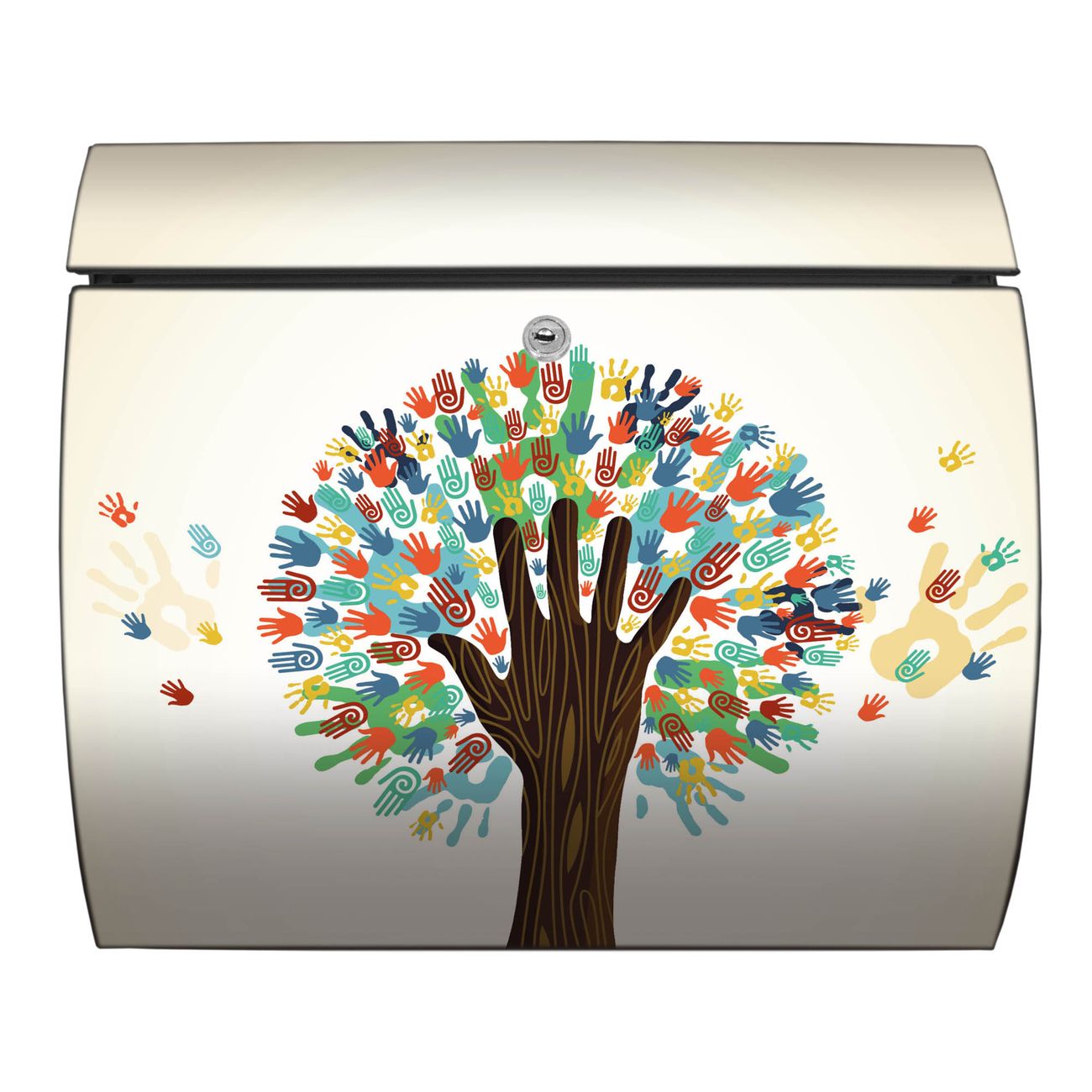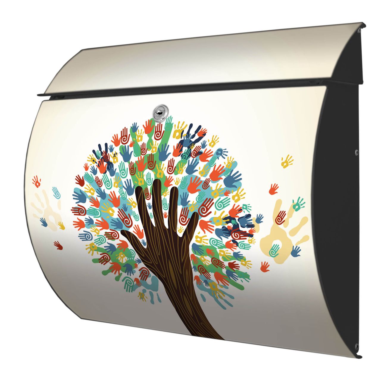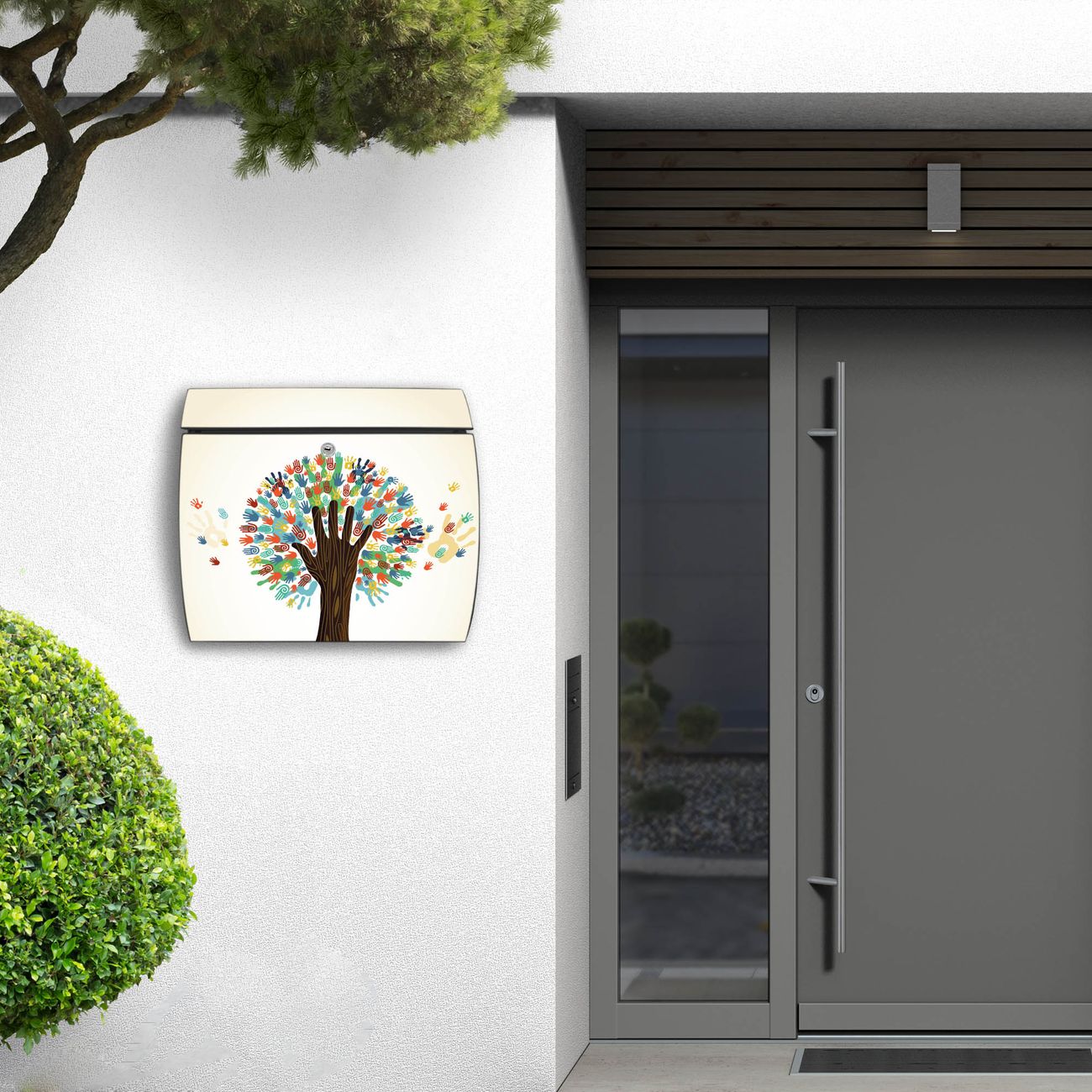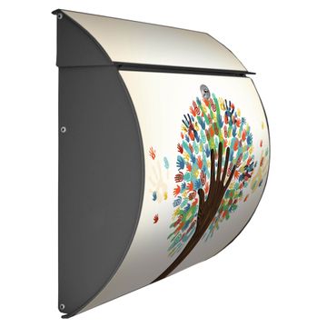 FUNKTION: DESIGN: Das Burg Wächter Modell Toscana mit Motiv We are the World hat ein sehr ansprechendes und zeitloses Design und ist besonderes wetterfest. Heben Sie Sich von der tristen grauen Masse ab, ohne auf Funktionalität zu verzichten. Wir bieten Ihnen ebenfalls Namensschilder, bereits beschriftet oder frei zu beschriften, und verschiedene selbst gestaltete Bitte-Keine-Werbung-Aufkleber. DETAILS: Der Postkasten besteht aus vollflächig verzinktem Stahl welcher in Anthrazit oder Weiß lackiert wurde oder aus Edelstahl (je nach gewählter Variante). Das Motiv besteht aus einer wetter- und UV-festen Folie, die mit einem Schutzlaminat überzogen ist, durch die Ihren Briefkasten zusätzlich vor Kratzern geschützt ist und auf den Briefkasten kaschiert wurde. Sie erhalten zu Ihrem neuen Design Briefkasten 2 Schlüssel sowie das passende Montagematerial. BANJADO: Ihr Briefkasten wird von Burg Wächter in Deutschland gefertigt und in unserer kleinen Manufaktur von Hand veredelt. Die Motivfolie ist lösungsmittelfrei und schutzlaminiert, dies sorgt für einen langen Halt. Wir legen großen Wert auf die Verbindung von Funktionalität und Design. Sie erhalten besondere Handarbeit aus Sachsen und Made in Germany.