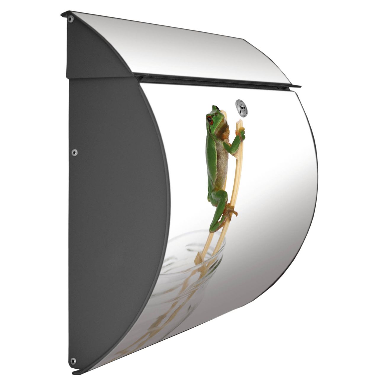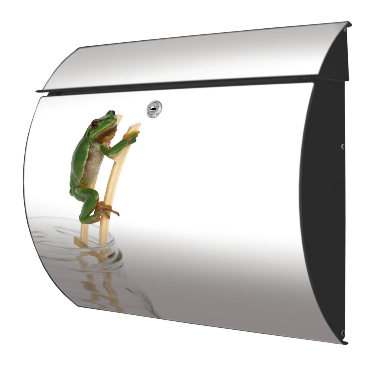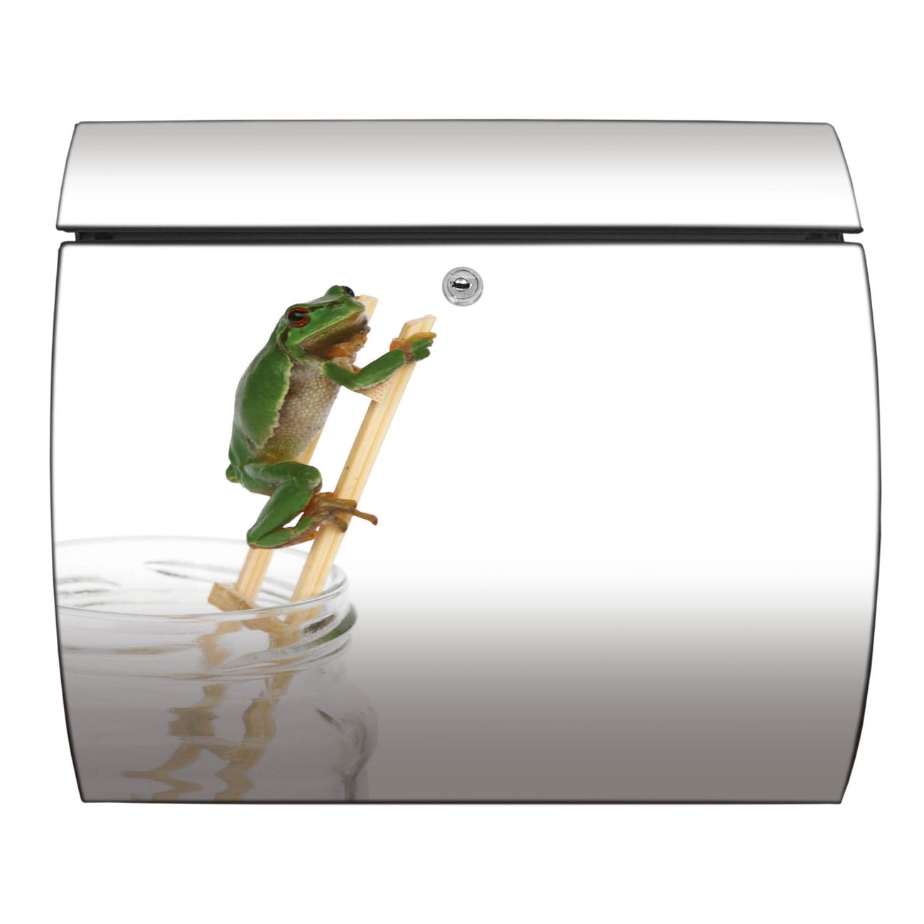 FUNKTION: DESIGN: Das Burg Wächter Modell Toscana mit Motiv Wetterfrosch hat ein sehr ansprechendes und zeitloses Design und ist besonderes wetterfest. Heben Sie Sich von der tristen grauen Masse ab, ohne auf Funktionalität zu verzichten. Wir bieten Ihnen ebenfalls Namensschilder, bereits beschriftet oder frei zu beschriften, und verschiedene selbst gestaltete Bitte-Keine-Werbung-Aufkleber. DETAILS: Der Postkasten besteht aus vollflächig verzinktem Stahl welcher in Anthrazit oder Weiß lackiert wurde oder aus Edelstahl (je nach gewählter Variante). Das Motiv besteht aus einer wetter- und UV-festen Folie, die mit einem Schutzlaminat überzogen ist, durch die Ihren Briefkasten zusätzlich vor Kratzern geschützt ist und auf den Briefkasten kaschiert wurde. Sie erhalten zu Ihrem neuen Design Briefkasten 2 Schlüssel sowie das passende Montagematerial. BANJADO: Ihr Briefkasten wird von Burg Wächter in Deutschland gefertigt und in unserer kleinen Manufaktur von Hand veredelt. Die Motivfolie ist lösungsmittelfrei und schutzlaminiert, dies sorgt für einen langen Halt. Wir legen großen Wert auf die Verbindung von Funktionalität und Design. Sie erhalten besondere Handarbeit aus Sachsen und Made in Germany.