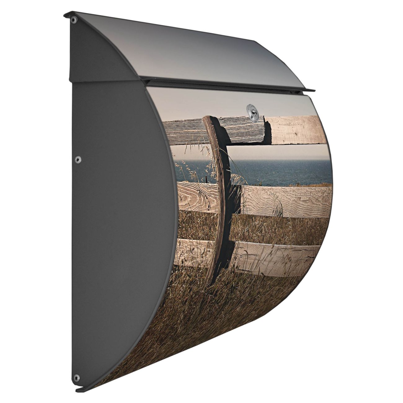 Der geschwungene Burg Wächter Briefkasten Toscana mit Motiv Zaun am Meer bietet Ihnen mit seinem großen Fassungsvermögen genügend Platz auch für große A4 Sendungen. Auf Wunsch können Sie bei uns den passenden Standfuß bestellen und so aus dem Wandbriefkasten einen Standbriefkasten machen. Der integrierte Öffnungsstopp ermöglicht eine einfache Handhabung beim Entnehmen der Post.