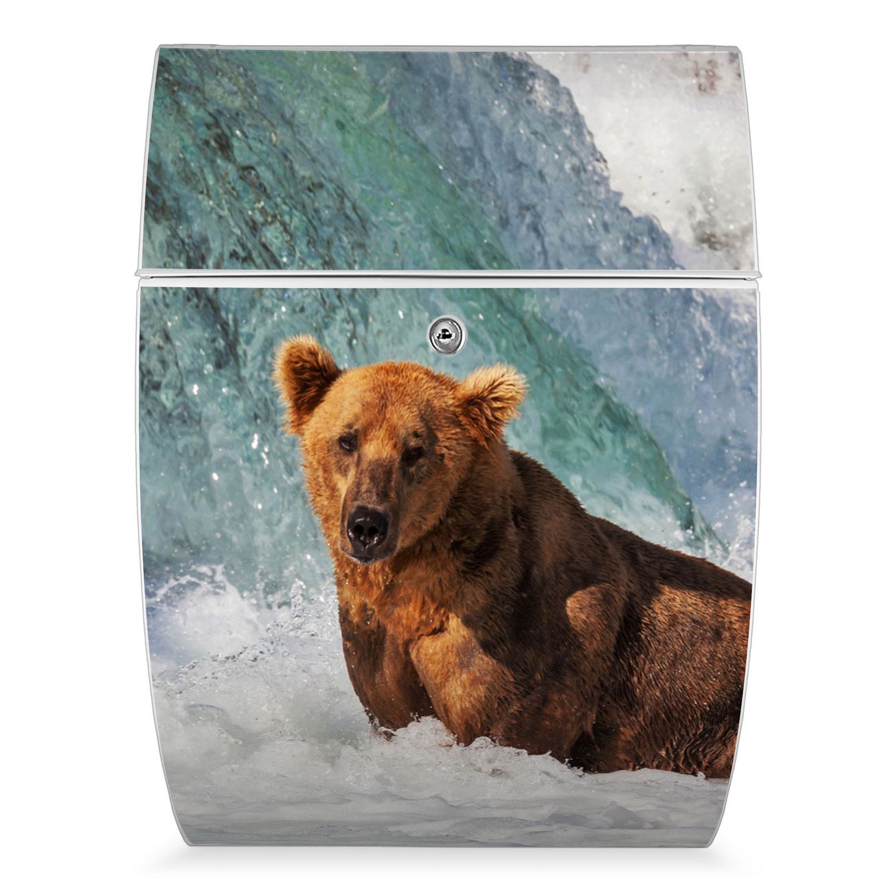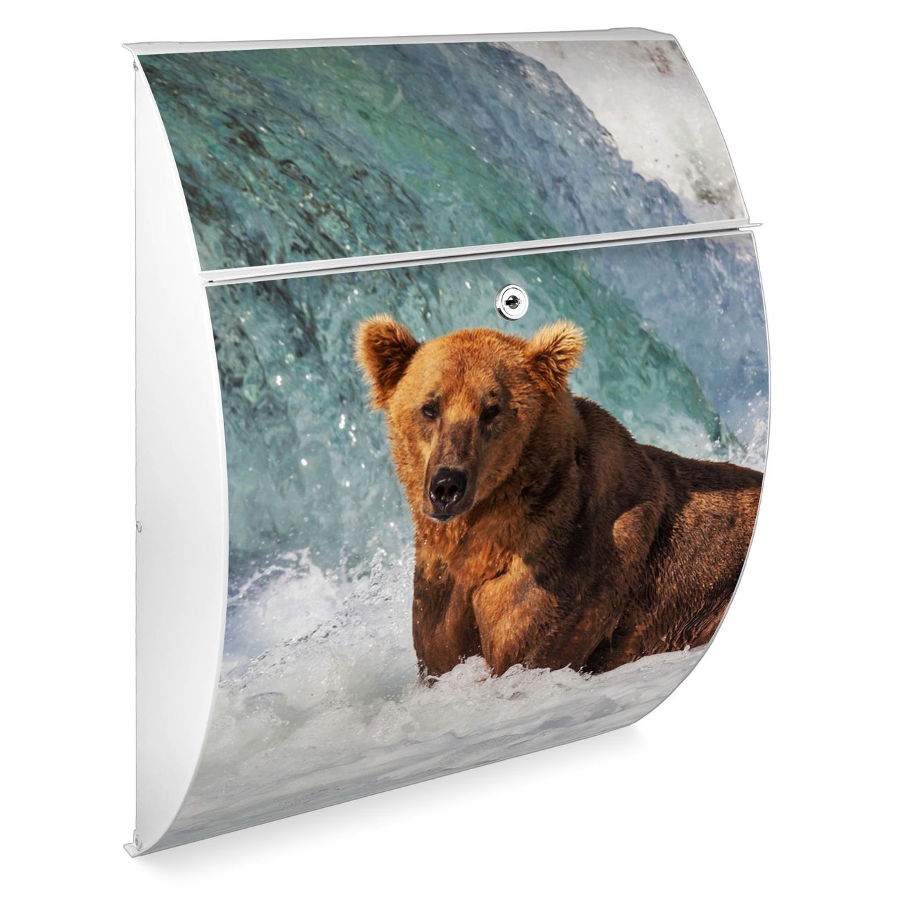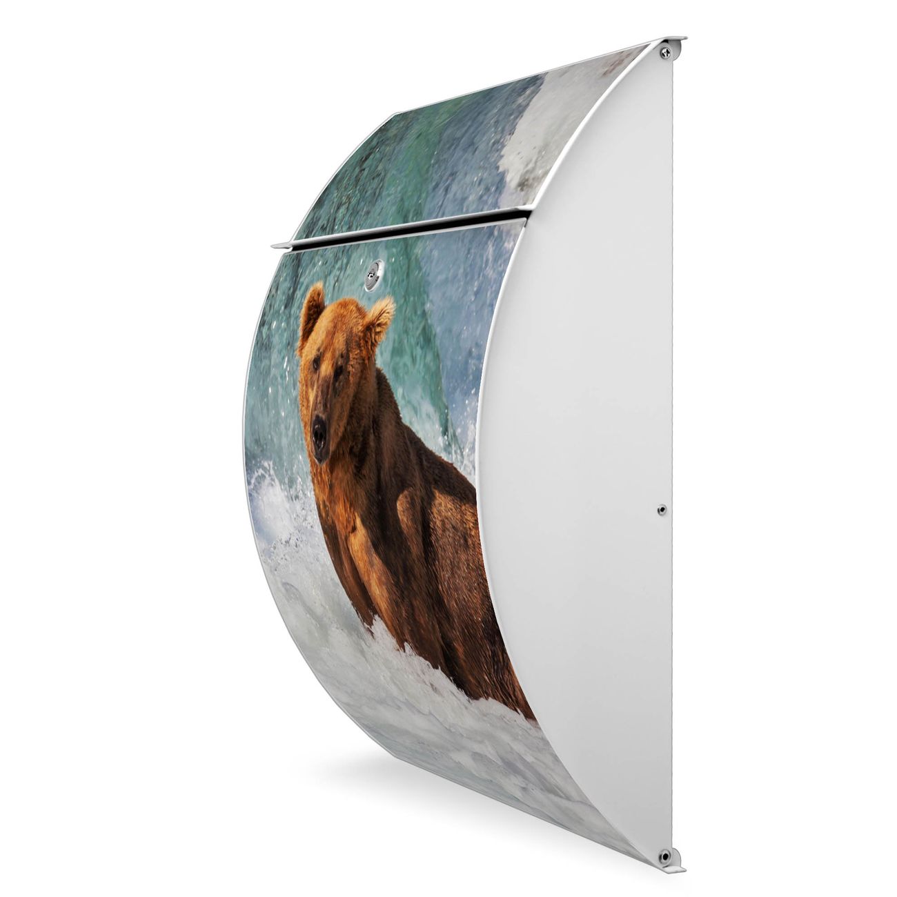 Der weiße Burg Wächter Design Briefkasten mit Motiv Bär Im Wasser bietet Ihnen mit seinem Fassungsvermögen genügend Platz auch für große A4 Sendungen. Auf Wunsch können Sie bei uns auch den passenden Ständer kaufen und so aus dem Wandbriefkasten einen Standbriefkasten machen.
