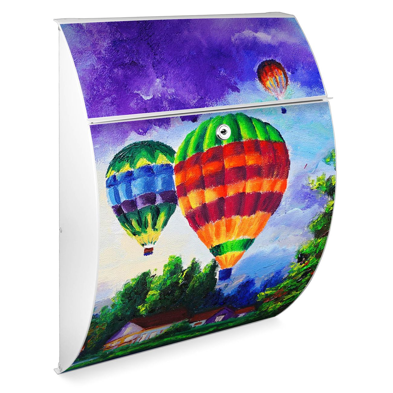 Der weiße Burg Wächter Design Briefkasten mit Motiv Ballons In Lila Wolken bietet Ihnen mit seinem Fassungsvermögen genügend Platz auch für große A4 Sendungen. Auf Wunsch können Sie bei uns auch den passenden Ständer kaufen und so aus dem Wandbriefkasten einen Standbriefkasten machen.