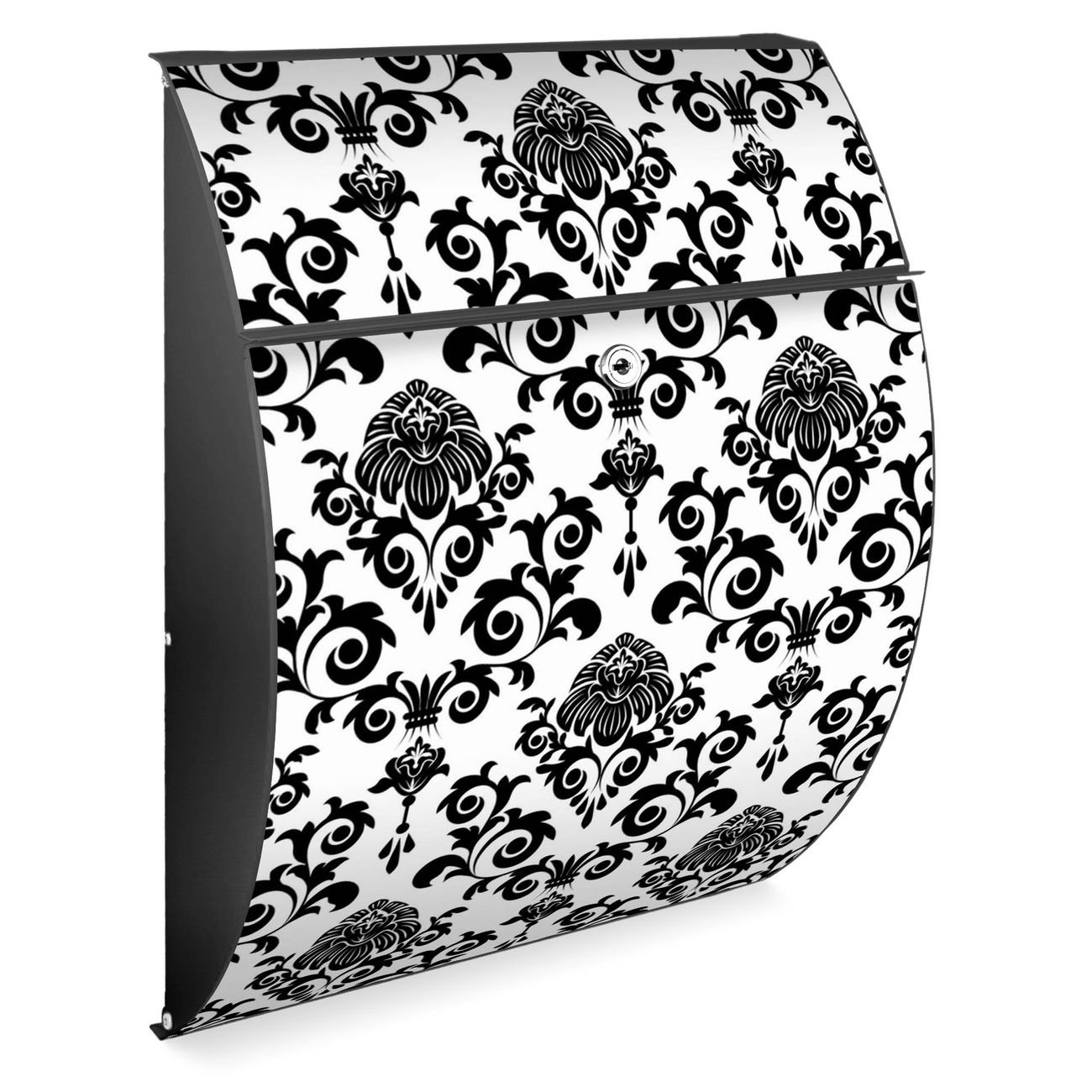 FUNKTION: DESIGN: Das Modell Riviera mit Motiv Barock hat ein sehr ansprechendes und zeitloses Design. Heben Sie Sich von der tristen grauen Masse ab, ohne auf Funktionalität zu verzichten. Der integrierte Öffnungsstopp ermöglicht eine einfache Handhabung beim Entnehmen der Post. DETAILS: Der Postkasten besteht aus vollflächig verzinktem Stahl welcher in Anthrazit lackiert wurde. Das Motiv besteht aus einer wetter- und UV-festen Folie, die mit einem Schutzlaminat überzogen ist, durch die Ihren Briefkasten zusätzlich vor Kratzern geschützt ist. Sie erhalten 2 Schlüssel sowie das passende Montagematerial. NUTZEN: Sie können den Briefkasten sowohl als Wandbriefkasten montieren oder einen passenden Ständer kaufen und als Standbriefkasten einbetonieren. Die Größe bietet genügend Platz für Sendungen aller Art, der Einwurf fasst auch größere A4 Sendungen. BANJADO: Ihr Briefkasten wird in Sachsen in einer kleinen Manufaktur von Hand veredelt. Die Motivfolie ist lösungsmittelfrei und schutzlaminiert, dies sorgt für einen langen Halt. Wir legen großen Wert auf die Verbindung von Funktionalität und Design. Sie erhalten Handarbeit aus Sachsen.
