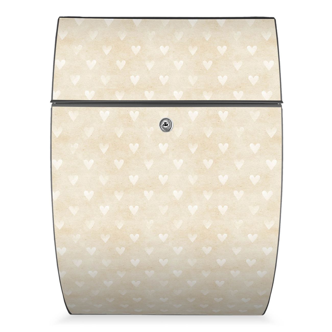 Der Burg Wächter Design Briefkasten mit Motiv Beige Herzen bietet Ihnen mit seinem Fassungsvermögen genügend Platz auch für große A4 Sendungen. Auf Wunsch können Sie bei uns den passenden Ständer kaufen und so aus dem Wandbriefkasten einen Standbriefkasten machen.