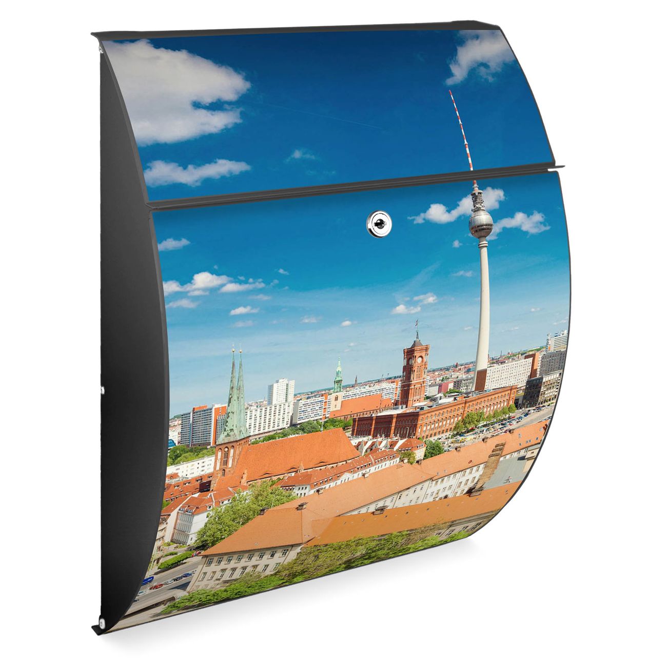 Der Burg Wächter Design Briefkasten mit Motiv Berlin Mitte bietet Ihnen mit seinem Fassungsvermögen genügend Platz auch für große A4 Sendungen. Auf Wunsch können Sie bei uns den passenden Ständer kaufen und so aus dem Wandbriefkasten einen Standbriefkasten machen.