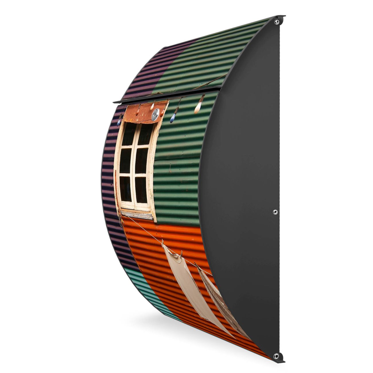 FUNKTION: DESIGN: Das Modell Riviera mit Motiv Buntes Haus hat ein sehr ansprechendes und zeitloses Design. Heben Sie Sich von der tristen grauen Masse ab, ohne auf Funktionalität zu verzichten. Der integrierte Öffnungsstopp ermöglicht eine einfache Handhabung beim Entnehmen der Post. DETAILS: Der Postkasten besteht aus vollflächig verzinktem Stahl welcher in Anthrazit lackiert wurde. Das Motiv besteht aus einer wetter- und UV-festen Folie, die mit einem Schutzlaminat überzogen ist, durch die Ihren Briefkasten zusätzlich vor Kratzern geschützt ist. Sie erhalten 2 Schlüssel sowie das passende Montagematerial. NUTZEN: Sie können den Briefkasten sowohl als Wandbriefkasten montieren oder einen passenden Ständer kaufen und als Standbriefkasten einbetonieren. Die Größe bietet genügend Platz für Sendungen aller Art, der Einwurf fasst auch größere A4 Sendungen. BANJADO: Ihr Briefkasten wird in Sachsen in einer kleinen Manufaktur von Hand veredelt. Die Motivfolie ist lösungsmittelfrei und schutzlaminiert, dies sorgt für einen langen Halt. Wir legen großen Wert auf die Verbindung von Funktionalität und Design. Sie erhalten Handarbeit aus Sachsen.
