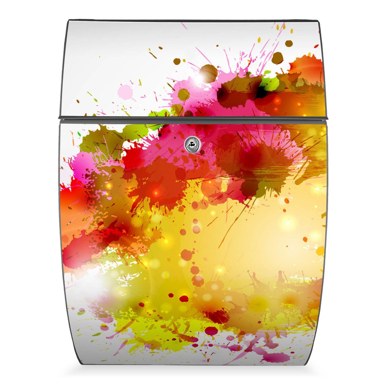 Der Burg Wächter Design Briefkasten mit Motiv Farbkleckse bietet Ihnen mit seinem Fassungsvermögen genügend Platz auch für große A4 Sendungen. Auf Wunsch können Sie bei uns den passenden Ständer kaufen und so aus dem Wandbriefkasten einen Standbriefkasten machen.