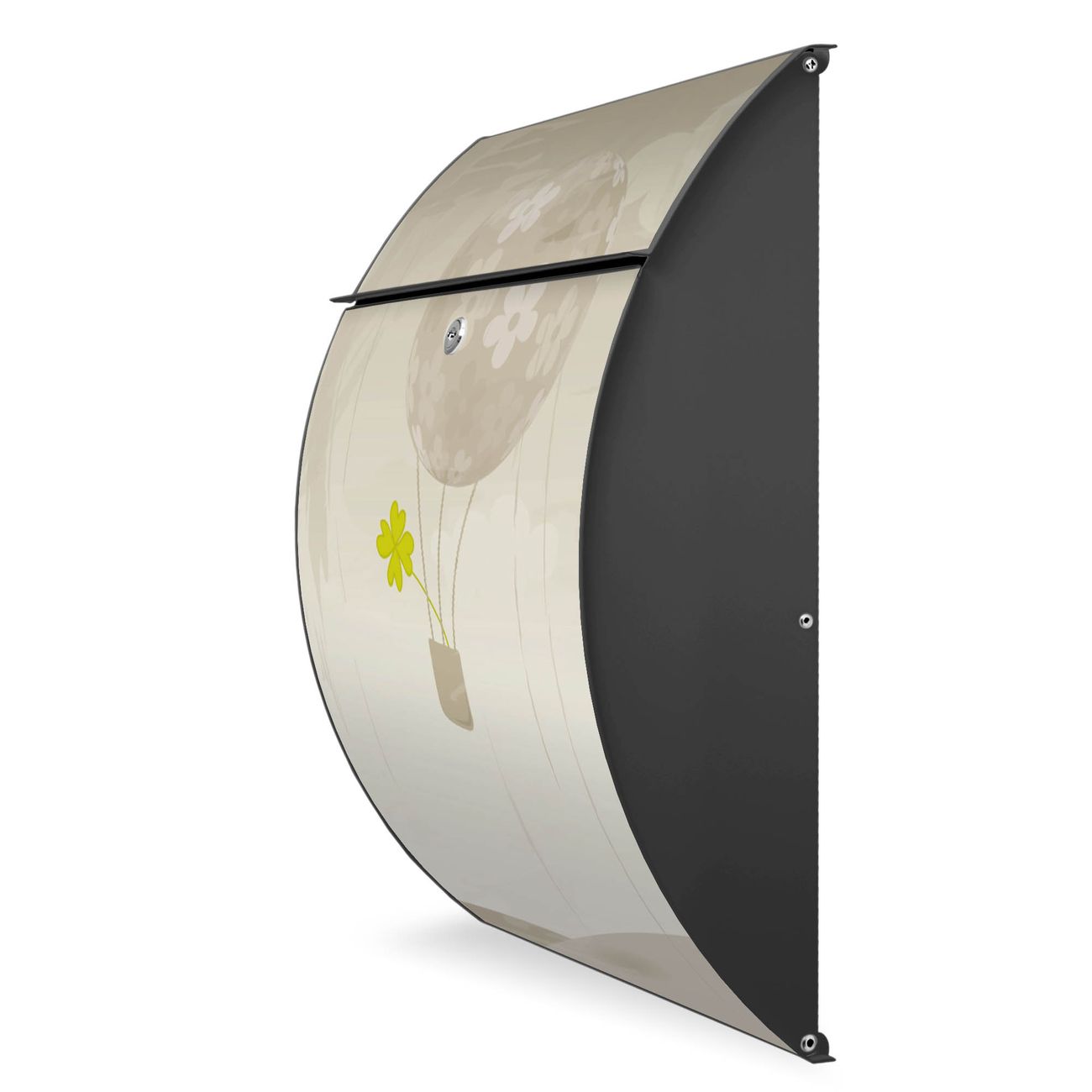 FUNKTION: DESIGN: Das Modell Riviera mit Motiv Flüchtiges Glück hat ein sehr ansprechendes und zeitloses Design. Heben Sie Sich von der tristen grauen Masse ab, ohne auf Funktionalität zu verzichten. Der integrierte Öffnungsstopp ermöglicht eine einfache Handhabung beim Entnehmen der Post. DETAILS: Der Postkasten besteht aus vollflächig verzinktem Stahl welcher in Anthrazit lackiert wurde. Das Motiv besteht aus einer wetter- und UV-festen Folie, die mit einem Schutzlaminat überzogen ist, durch die Ihren Briefkasten zusätzlich vor Kratzern geschützt ist. Sie erhalten 2 Schlüssel sowie das passende Montagematerial. NUTZEN: Sie können den Briefkasten sowohl als Wandbriefkasten montieren oder einen passenden Ständer kaufen und als Standbriefkasten einbetonieren. Die Größe bietet genügend Platz für Sendungen aller Art, der Einwurf fasst auch größere A4 Sendungen. BANJADO: Ihr Briefkasten wird in Sachsen in einer kleinen Manufaktur von Hand veredelt. Die Motivfolie ist lösungsmittelfrei und schutzlaminiert, dies sorgt für einen langen Halt. Wir legen großen Wert auf die Verbindung von Funktionalität und Design. Sie erhalten Handarbeit aus Sachsen.