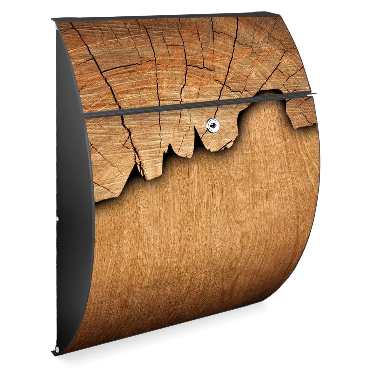 FUNKTION: DESIGN: Das Modell Riviera mit Motiv Holz hat ein sehr ansprechendes und zeitloses Design. Heben Sie Sich von der tristen grauen Masse ab, ohne auf Funktionalität zu verzichten. Der integrierte Öffnungsstopp ermöglicht eine einfache Handhabung beim Entnehmen der Post. DETAILS: Der Postkasten besteht aus vollflächig verzinktem Stahl welcher in Anthrazit lackiert wurde. Das Motiv besteht aus einer wetter- und UV-festen Folie, die mit einem Schutzlaminat überzogen ist, durch die Ihren Briefkasten zusätzlich vor Kratzern geschützt ist. Sie erhalten 2 Schlüssel sowie das passende Montagematerial. NUTZEN: Sie können den Briefkasten sowohl als Wandbriefkasten montieren oder einen passenden Ständer kaufen und als Standbriefkasten einbetonieren. Die Größe bietet genügend Platz für Sendungen aller Art, der Einwurf fasst auch größere A4 Sendungen. BANJADO: Ihr Briefkasten wird in Sachsen in einer kleinen Manufaktur von Hand veredelt. Die Motivfolie ist lösungsmittelfrei und schutzlaminiert, dies sorgt für einen langen Halt. Wir legen großen Wert auf die Verbindung von Funktionalität und Design. Sie erhalten Handarbeit aus Sachsen.