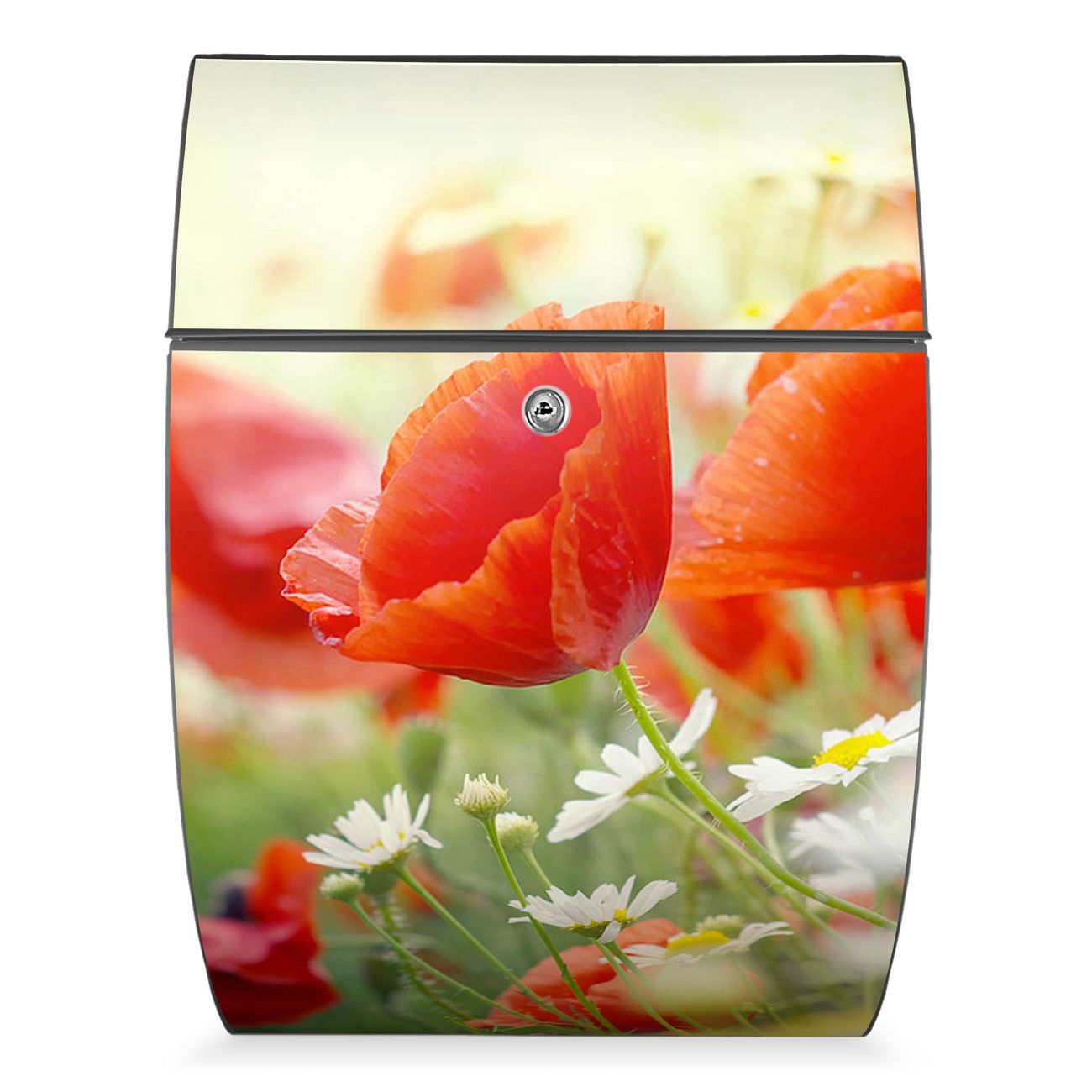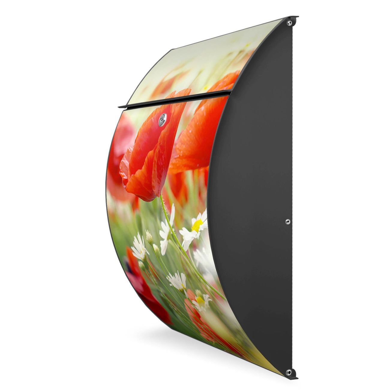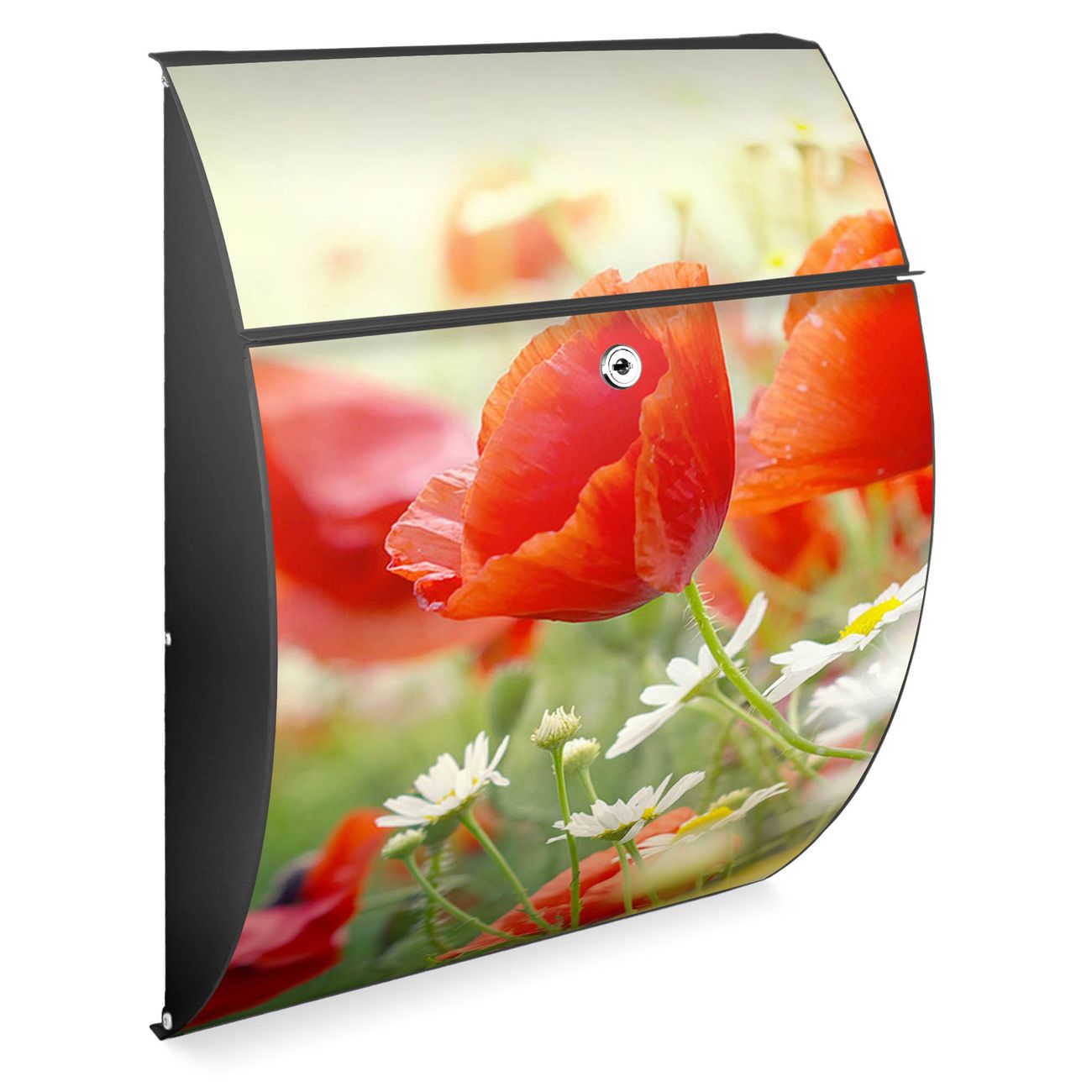 Der Burg Wächter Design Briefkasten mit Motiv Kamille Und Mohn bietet Ihnen mit seinem Fassungsvermögen genügend Platz auch für große A4 Sendungen. Auf Wunsch können Sie bei uns den passenden Ständer kaufen und so aus dem Wandbriefkasten einen Standbriefkasten machen.