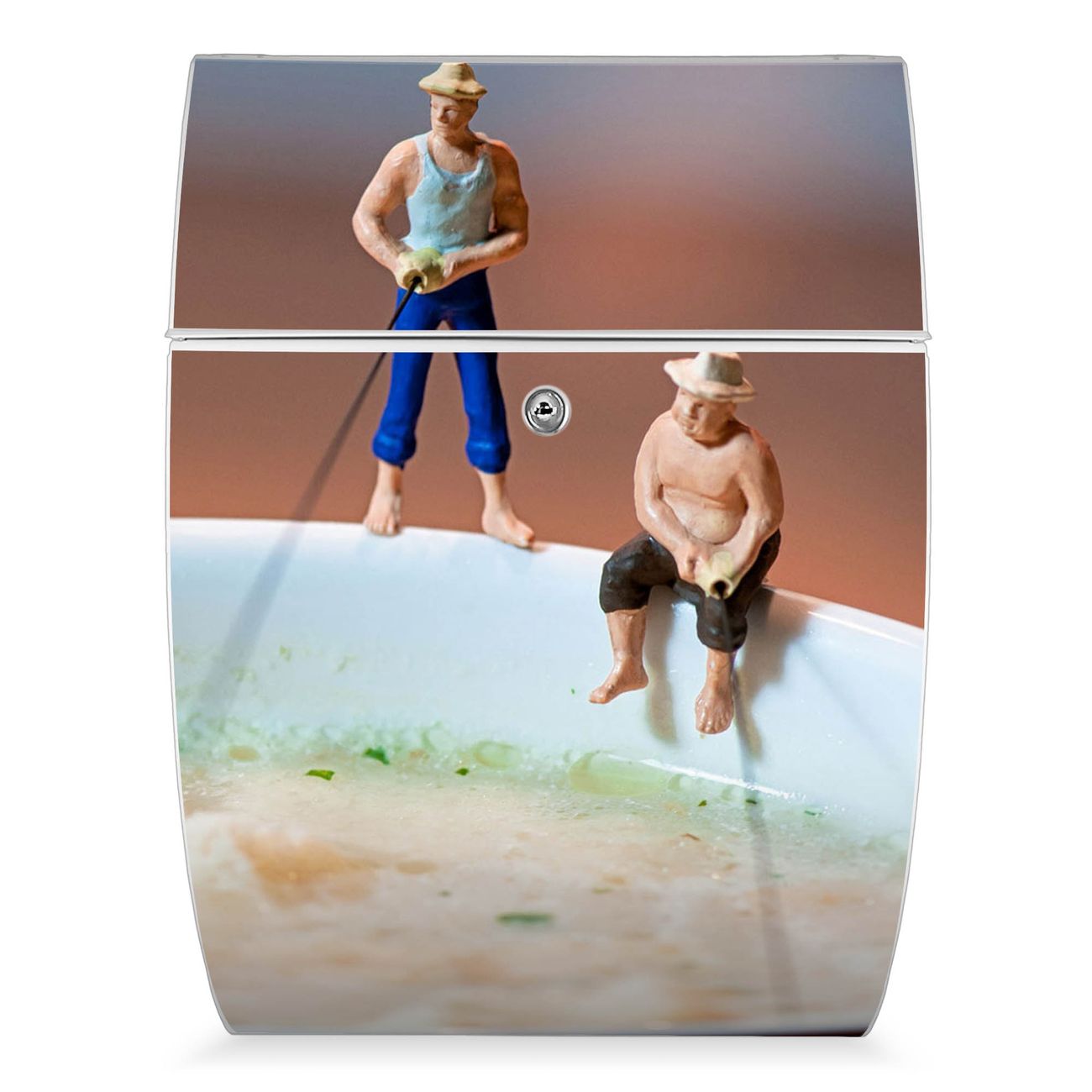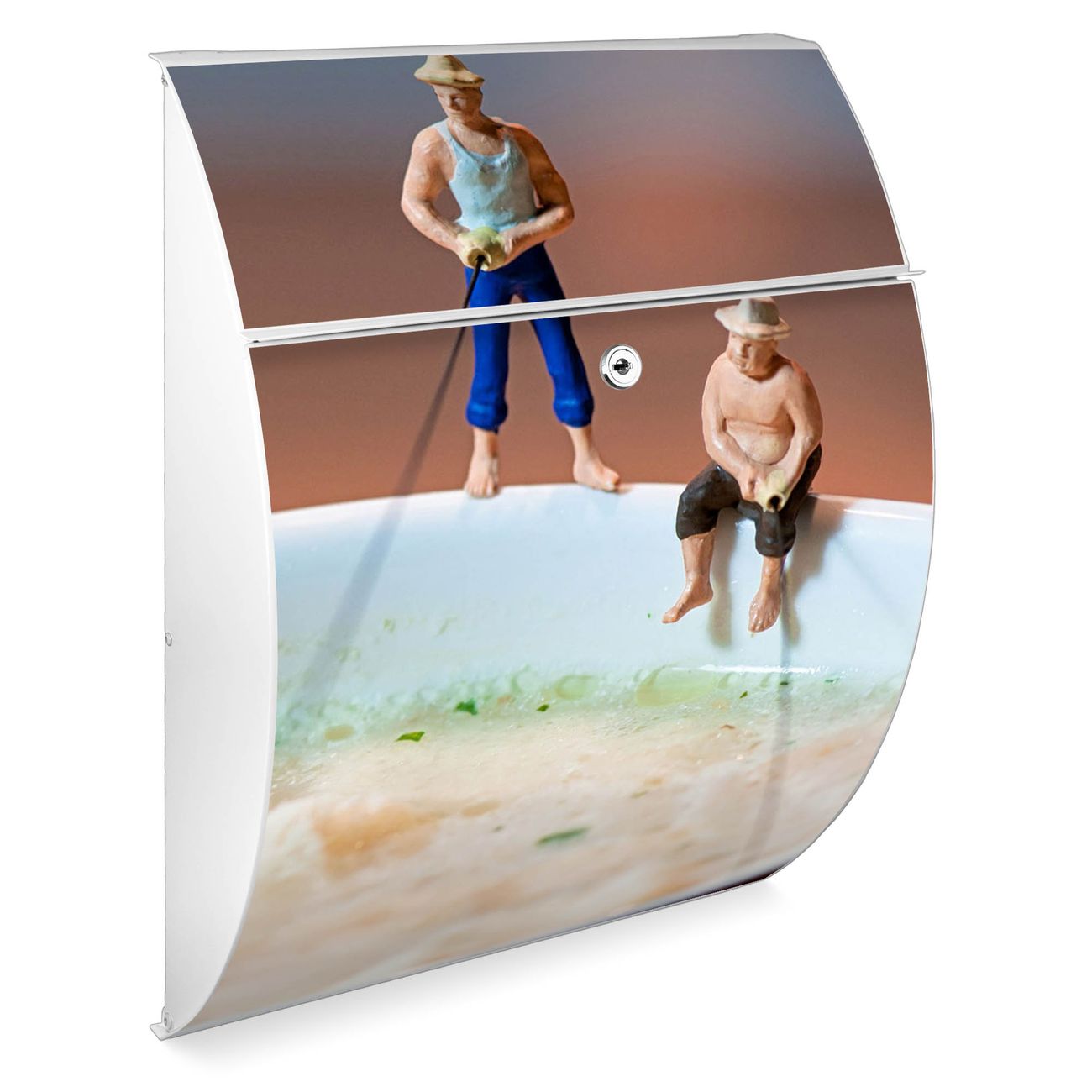 FUNKTION: DESIGN: Das Modell Riviera mit Motiv Männersache hat ein sehr ansprechendes und zeitloses Design. Heben Sie Sich von der tristen grauen Masse ab, ohne auf Funktionalität zu verzichten. Der integrierte Öffnungsstopp ermöglicht eine einfache Handhabung beim Entnehmen der Post. DETAILS: Der Postkasten besteht aus vollflächig verzinktem Stahl welcher in weiß lackiert wurde. Das Motiv besteht aus einer wetter- und UV-festen Folie, die mit einem Schutzlaminat überzogen ist, durch die Ihren Briefkasten zusätzlich vor Kratzern geschützt ist. Sie erhalten 2 Schlüssel sowie das passende Montagematerial. NUTZEN: Sie können den Briefkasten sowohl als Wandbriefkasten montieren oder einen passenden Ständer kaufen und als Standbriefkasten einbetonieren. Die Größe bietet genügend Platz für Sendungen aller Art, der Einwurf fasst auch größere A4 Sendungen. BANJADO: Ihr Briefkasten wird in Sachsen in einer kleinen Manufaktur von Hand veredelt. Die Motivfolie ist lösungsmittelfrei und schutzlaminiert, dies sorgt für einen langen Halt. Wir legen großen Wert auf die Verbindung von Funktionalität und Design. Sie erhalten Handarbeit aus Sachsen.