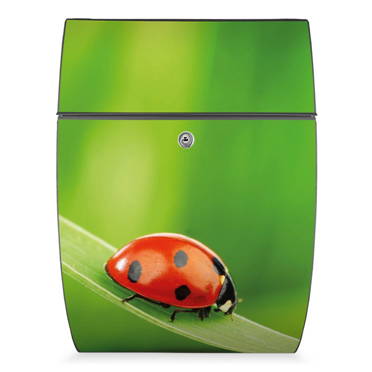 FUNKTION: DESIGN: Das Modell Riviera mit Motiv Marienkäfer hat ein sehr ansprechendes und zeitloses Design. Heben Sie Sich von der tristen grauen Masse ab, ohne auf Funktionalität zu verzichten. Der integrierte Öffnungsstopp ermöglicht eine einfache Handhabung beim Entnehmen der Post. DETAILS: Der Postkasten besteht aus vollflächig verzinktem Stahl welcher in Anthrazit lackiert wurde. Das Motiv besteht aus einer wetter- und UV-festen Folie, die mit einem Schutzlaminat überzogen ist, durch die Ihren Briefkasten zusätzlich vor Kratzern geschützt ist. Sie erhalten 2 Schlüssel sowie das passende Montagematerial. NUTZEN: Sie können den Briefkasten sowohl als Wandbriefkasten montieren oder einen passenden Ständer kaufen und als Standbriefkasten einbetonieren. Die Größe bietet genügend Platz für Sendungen aller Art, der Einwurf fasst auch größere A4 Sendungen. BANJADO: Ihr Briefkasten wird in Sachsen in einer kleinen Manufaktur von Hand veredelt. Die Motivfolie ist lösungsmittelfrei und schutzlaminiert, dies sorgt für einen langen Halt. Wir legen großen Wert auf die Verbindung von Funktionalität und Design. Sie erhalten Handarbeit aus Sachsen.