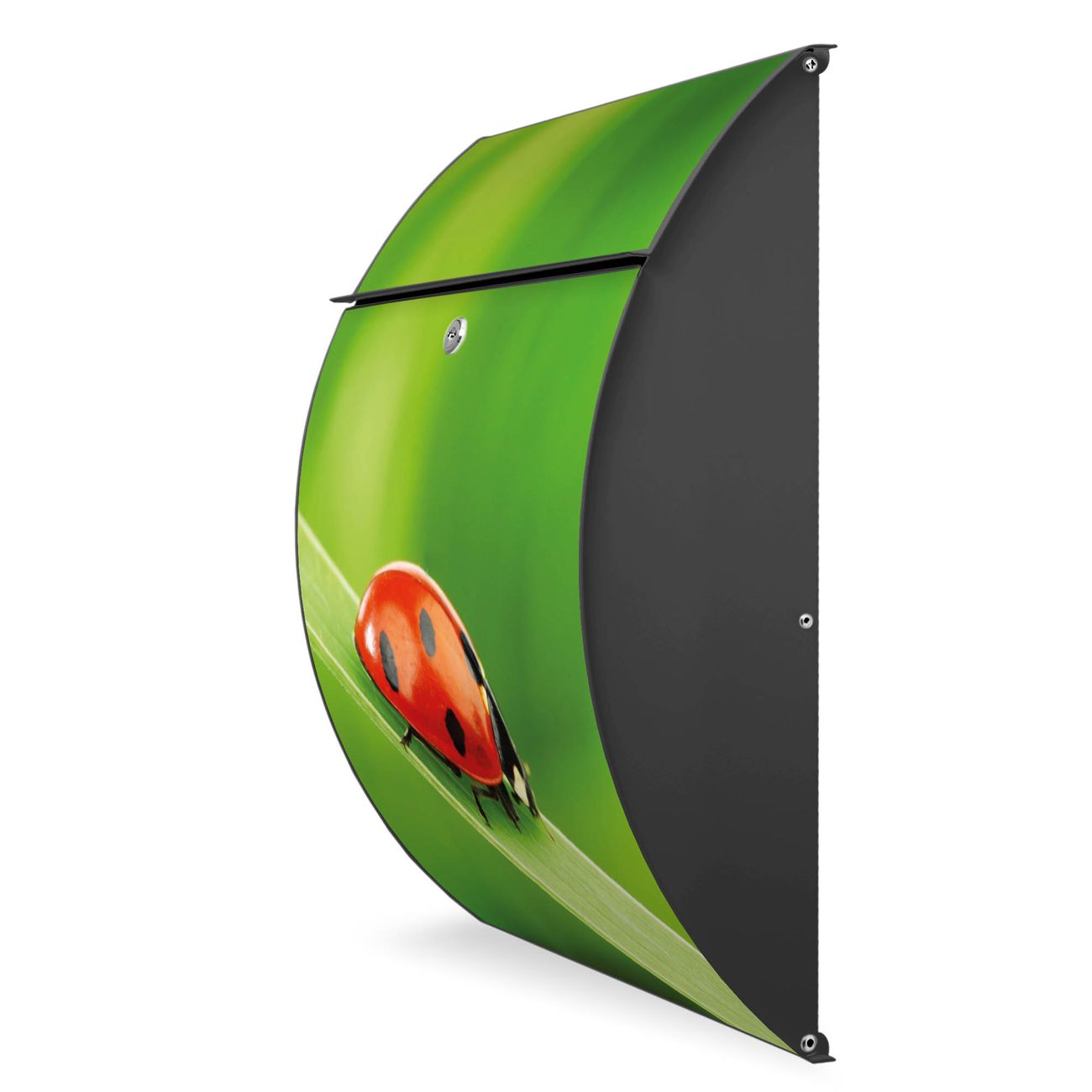 Der Burg Wächter Design Briefkasten mit Motiv Marienkäfer bietet Ihnen mit seinem Fassungsvermögen genügend Platz auch für große A4 Sendungen. Auf Wunsch können Sie bei uns den passenden Ständer kaufen und so aus dem Wandbriefkasten einen Standbriefkasten machen.