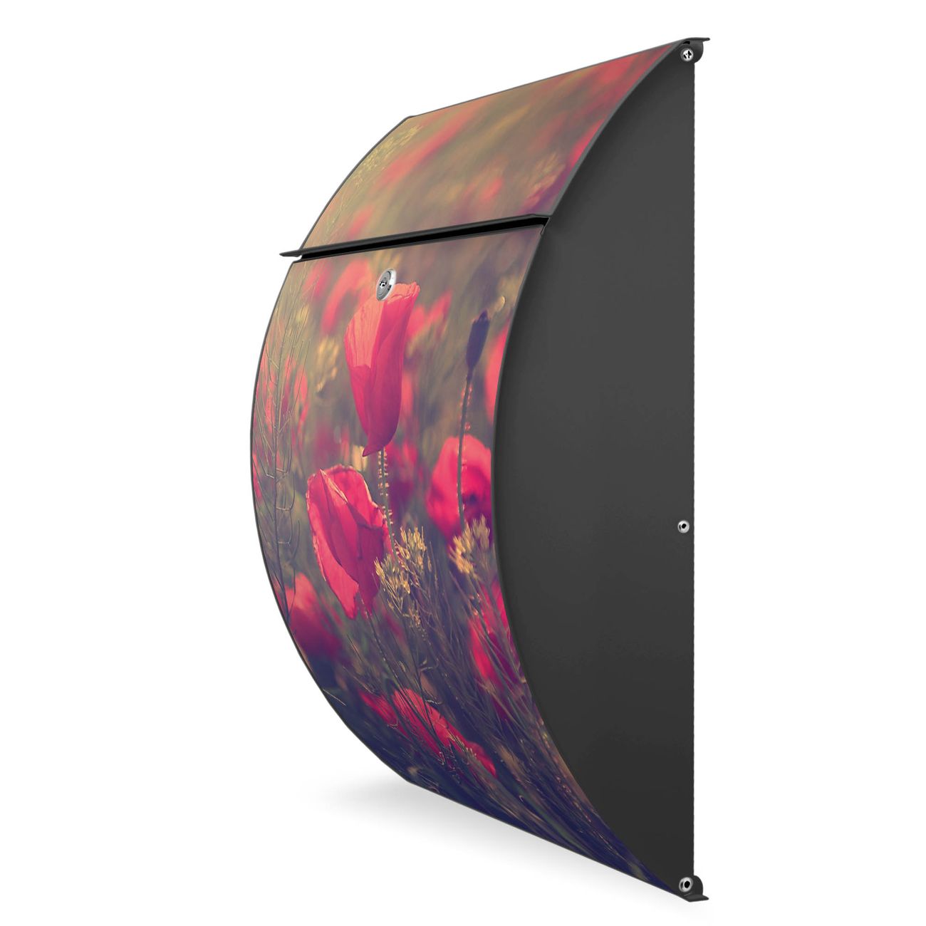 Der Burg Wächter Design Briefkasten mit Motiv Mohn bietet Ihnen mit seinem Fassungsvermögen genügend Platz auch für große A4 Sendungen. Auf Wunsch können Sie bei uns den passenden Ständer kaufen und so aus dem Wandbriefkasten einen Standbriefkasten machen.