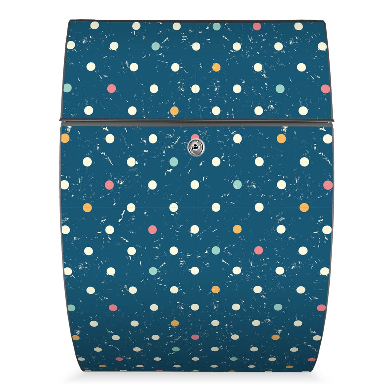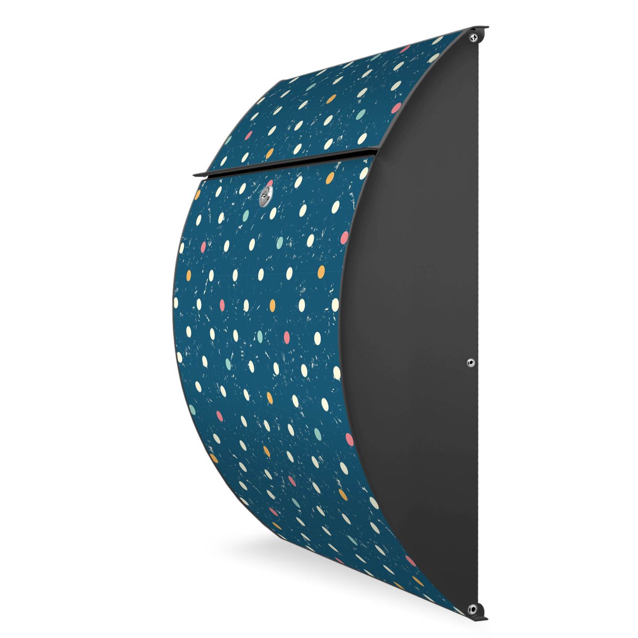 Der Burg Wächter Design Briefkasten mit Motiv Punkte auf Blau bietet Ihnen mit seinem Fassungsvermögen genügend Platz auch für große A4 Sendungen. Auf Wunsch können Sie bei uns den passenden Ständer kaufen und so aus dem Wandbriefkasten einen Standbriefkasten machen.
