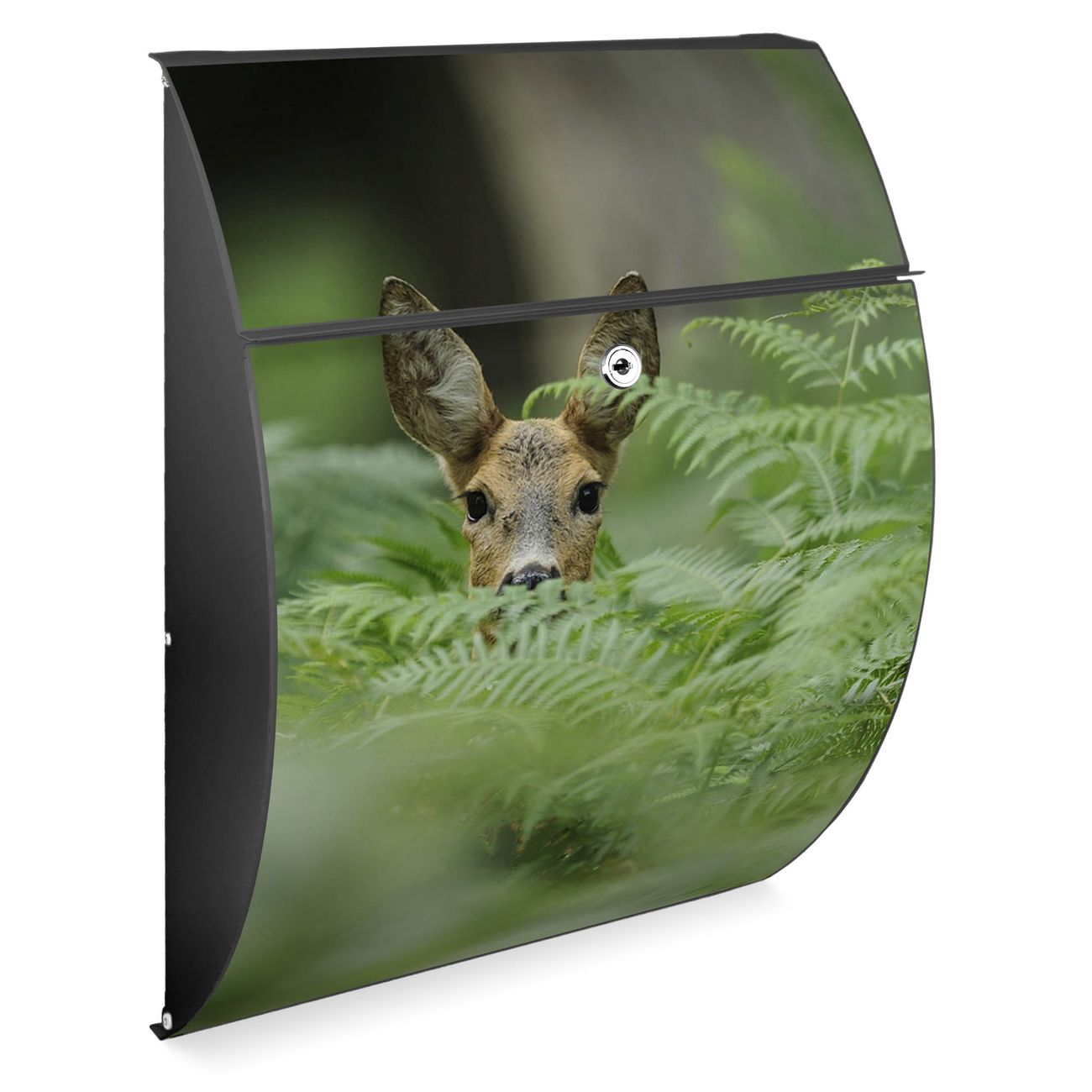 FUNKTION: DESIGN: Das Modell Riviera mit Motiv Reh hat ein sehr ansprechendes und zeitloses Design. Heben Sie Sich von der tristen grauen Masse ab, ohne auf Funktionalität zu verzichten. Der integrierte Öffnungsstopp ermöglicht eine einfache Handhabung beim Entnehmen der Post. DETAILS: Der Postkasten besteht aus vollflächig verzinktem Stahl welcher in Anthrazit lackiert wurde. Das Motiv besteht aus einer wetter- und UV-festen Folie, die mit einem Schutzlaminat überzogen ist, durch die Ihren Briefkasten zusätzlich vor Kratzern geschützt ist. Sie erhalten 2 Schlüssel sowie das passende Montagematerial. NUTZEN: Sie können den Briefkasten sowohl als Wandbriefkasten montieren oder einen passenden Ständer kaufen und als Standbriefkasten einbetonieren. Die Größe bietet genügend Platz für Sendungen aller Art, der Einwurf fasst auch größere A4 Sendungen. BANJADO: Ihr Briefkasten wird in Sachsen in einer kleinen Manufaktur von Hand veredelt. Die Motivfolie ist lösungsmittelfrei und schutzlaminiert, dies sorgt für einen langen Halt. Wir legen großen Wert auf die Verbindung von Funktionalität und Design. Sie erhalten Handarbeit aus Sachsen.