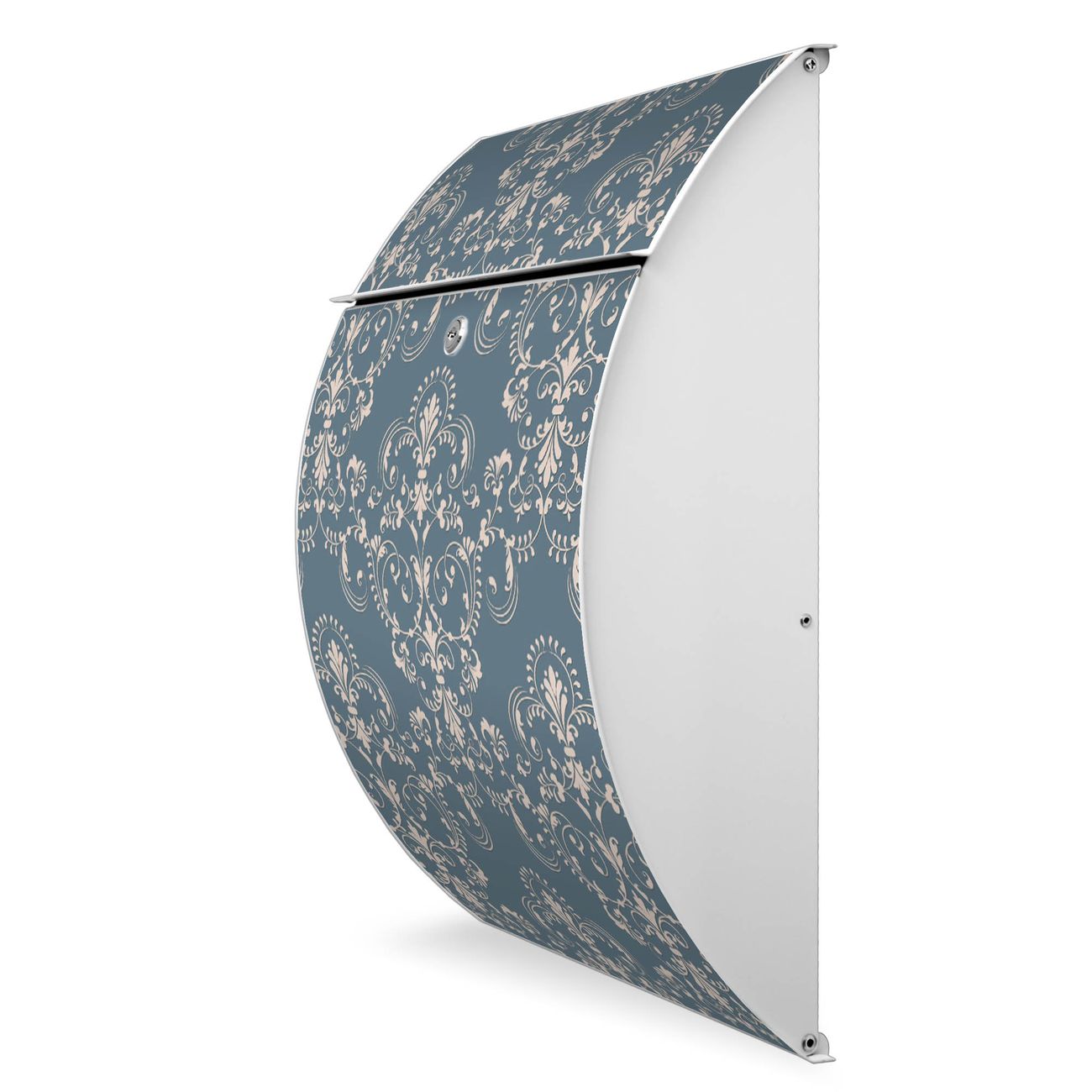 Der weiße Burg Wächter Design Briefkasten mit Motiv Royal Creme Blau bietet Ihnen mit seinem Fassungsvermögen genügend Platz auch für große A4 Sendungen. Auf Wunsch können Sie bei uns auch den passenden Ständer kaufen und so aus dem Wandbriefkasten einen Standbriefkasten machen.