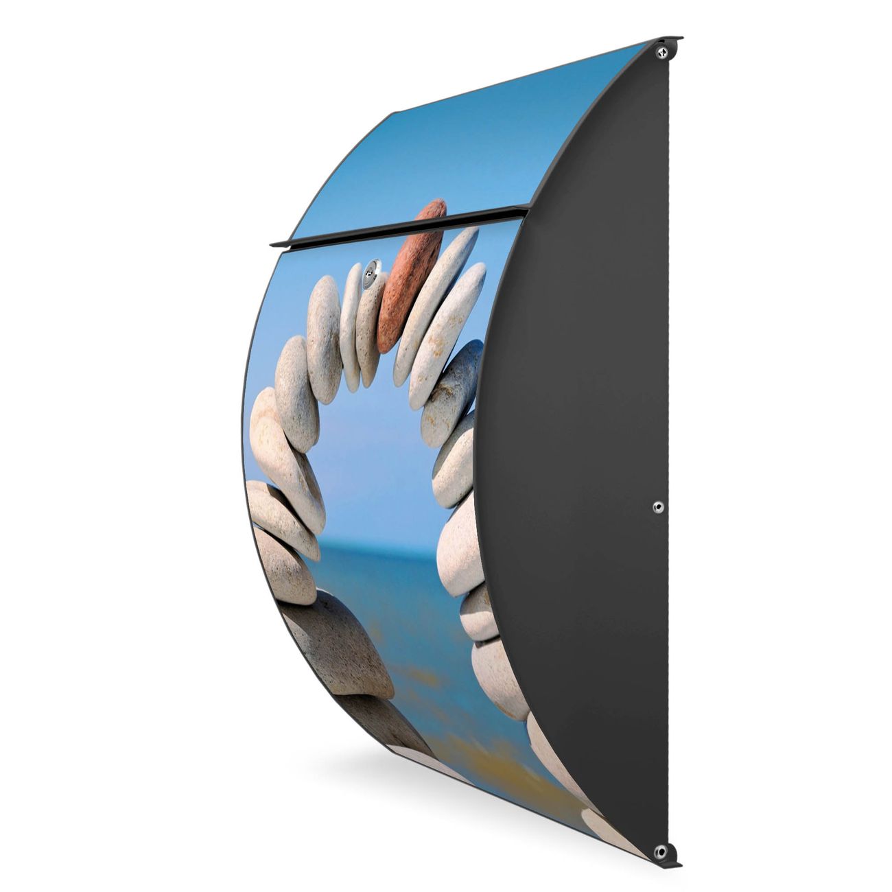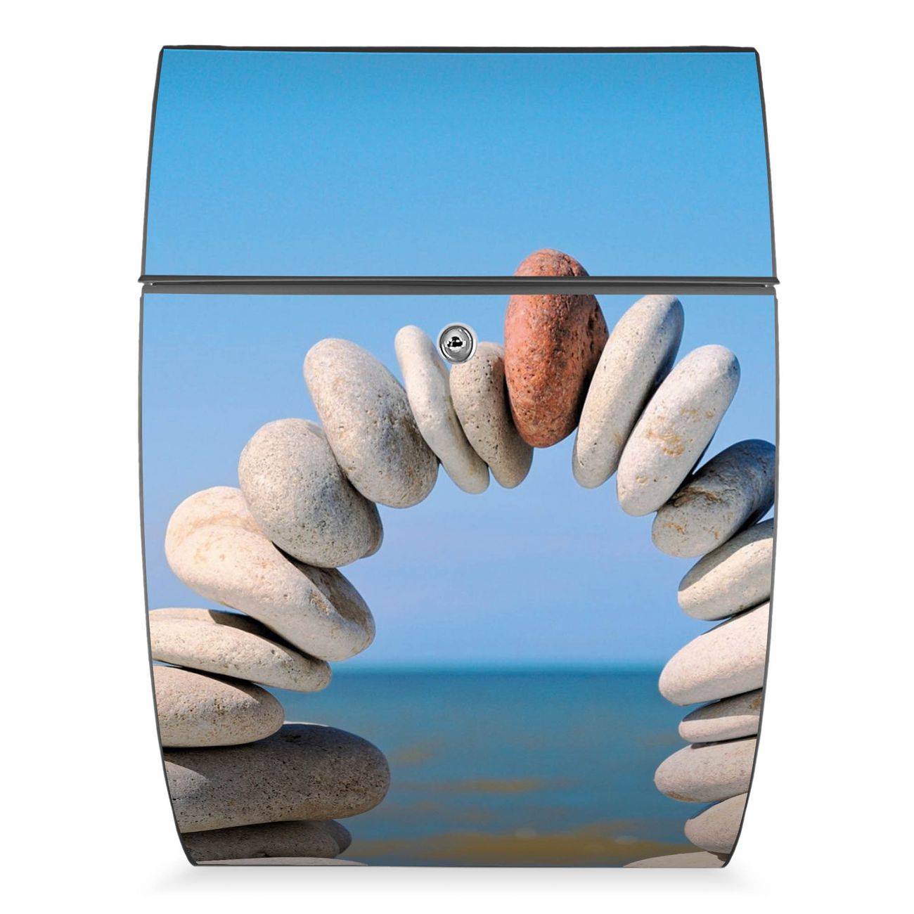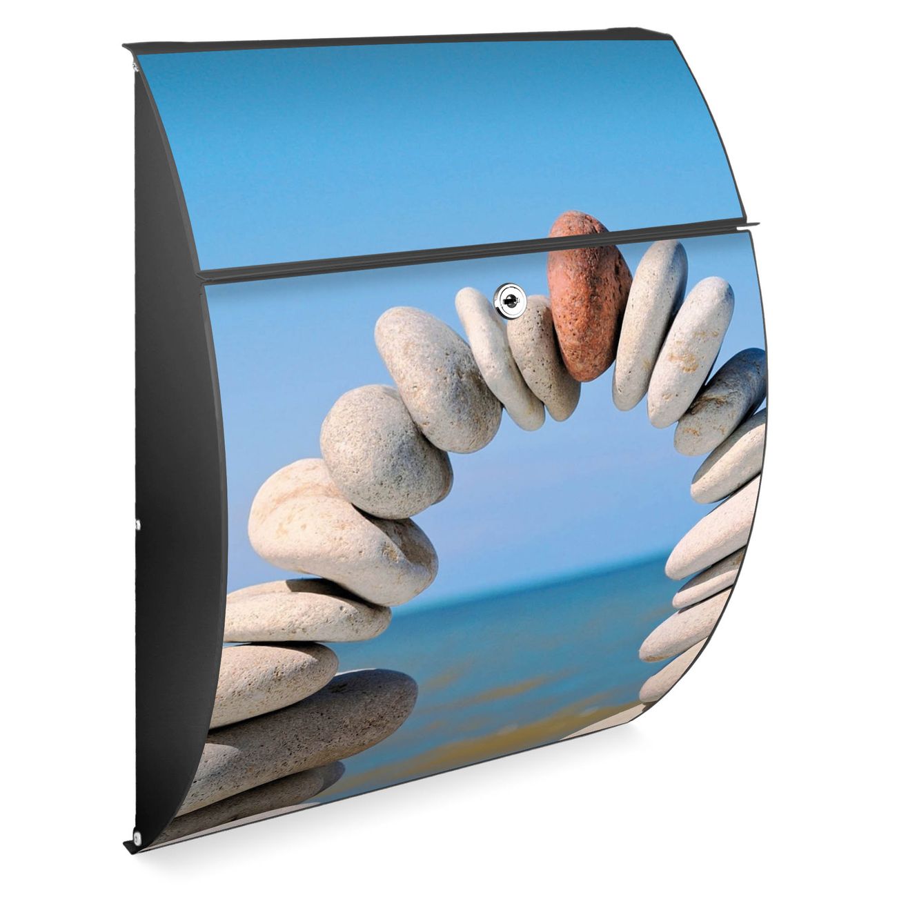 FUNKTION: DESIGN: Das Modell Riviera mit Motiv Steine&Meer hat ein sehr ansprechendes und zeitloses Design. Heben Sie Sich von der tristen grauen Masse ab, ohne auf Funktionalität zu verzichten. Der integrierte Öffnungsstopp ermöglicht eine einfache Handhabung beim Entnehmen der Post. DETAILS: Der Postkasten besteht aus vollflächig verzinktem Stahl welcher in Anthrazit lackiert wurde. Das Motiv besteht aus einer wetter- und UV-festen Folie, die mit einem Schutzlaminat überzogen ist, durch die Ihren Briefkasten zusätzlich vor Kratzern geschützt ist. Sie erhalten 2 Schlüssel sowie das passende Montagematerial. NUTZEN: Sie können den Briefkasten sowohl als Wandbriefkasten montieren oder einen passenden Ständer kaufen und als Standbriefkasten einbetonieren. Die Größe bietet genügend Platz für Sendungen aller Art, der Einwurf fasst auch größere A4 Sendungen. BANJADO: Ihr Briefkasten wird in Sachsen in einer kleinen Manufaktur von Hand veredelt. Die Motivfolie ist lösungsmittelfrei und schutzlaminiert, dies sorgt für einen langen Halt. Wir legen großen Wert auf die Verbindung von Funktionalität und Design. Sie erhalten Handarbeit aus Sachsen.
