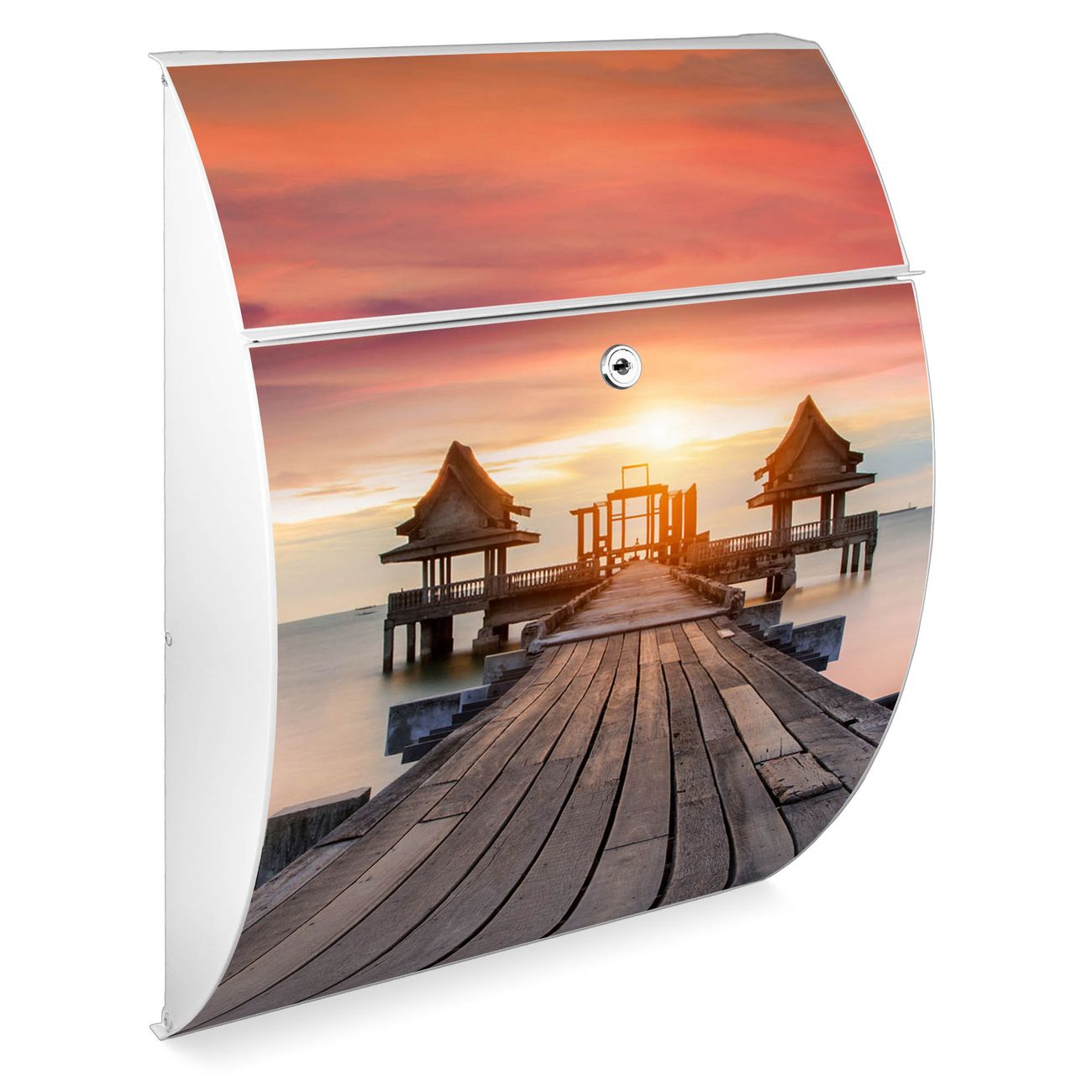 Der weiße Burg Wächter Design Briefkasten mit Motiv Überm Nebelmeer bietet Ihnen mit seinem Fassungsvermögen genügend Platz auch für große A4 Sendungen. Auf Wunsch können Sie bei uns auch den passenden Ständer kaufen und so aus dem Wandbriefkasten einen Standbriefkasten machen.