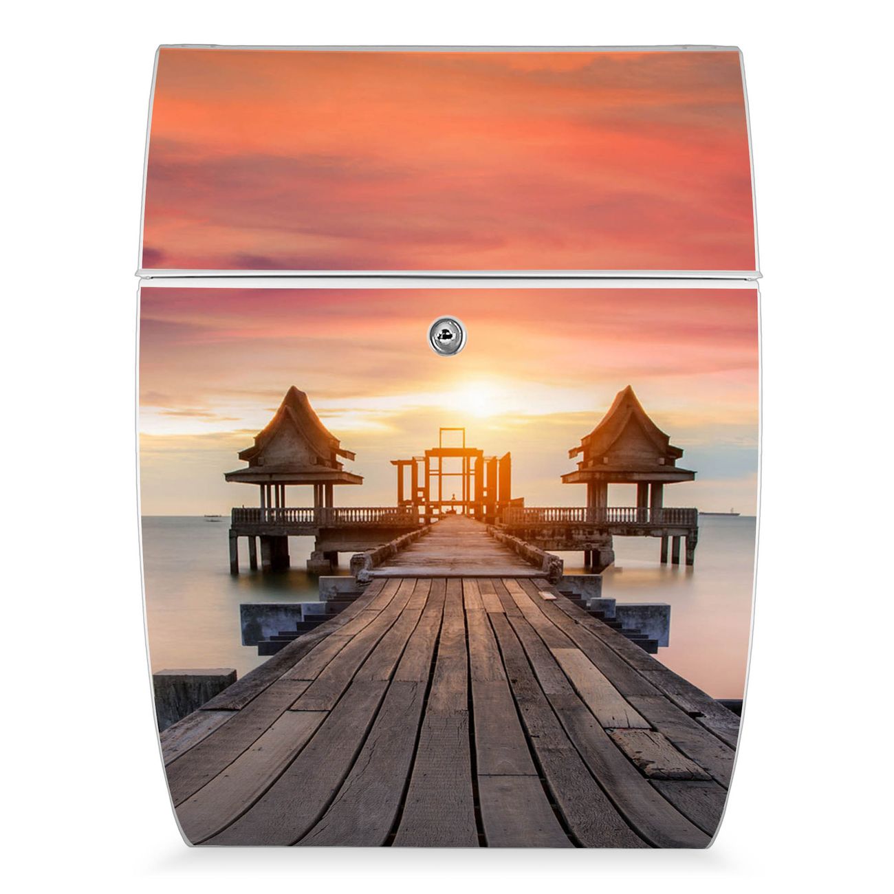 FUNKTION: DESIGN: Das Modell Riviera mit Motiv Überm Nebelmeer hat ein sehr ansprechendes und zeitloses Design. Heben Sie Sich von der tristen grauen Masse ab, ohne auf Funktionalität zu verzichten. Der integrierte Öffnungsstopp ermöglicht eine einfache Handhabung beim Entnehmen der Post. DETAILS: Der Postkasten besteht aus vollflächig verzinktem Stahl welcher in weiß lackiert wurde. Das Motiv besteht aus einer wetter- und UV-festen Folie, die mit einem Schutzlaminat überzogen ist, durch die Ihren Briefkasten zusätzlich vor Kratzern geschützt ist. Sie erhalten 2 Schlüssel sowie das passende Montagematerial. NUTZEN: Sie können den Briefkasten sowohl als Wandbriefkasten montieren oder einen passenden Ständer kaufen und als Standbriefkasten einbetonieren. Die Größe bietet genügend Platz für Sendungen aller Art, der Einwurf fasst auch größere A4 Sendungen. BANJADO: Ihr Briefkasten wird in Sachsen in einer kleinen Manufaktur von Hand veredelt. Die Motivfolie ist lösungsmittelfrei und schutzlaminiert, dies sorgt für einen langen Halt. Wir legen großen Wert auf die Verbindung von Funktionalität und Design. Sie erhalten Handarbeit aus Sachsen.