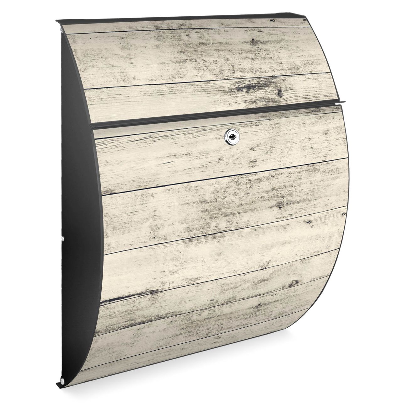 FUNKTION: DESIGN: Das Modell Riviera mit Motiv Weiße Planken H hat ein sehr ansprechendes und zeitloses Design. Heben Sie Sich von der tristen grauen Masse ab, ohne auf Funktionalität zu verzichten. Der integrierte Öffnungsstopp ermöglicht eine einfache Handhabung beim Entnehmen der Post. DETAILS: Der Postkasten besteht aus vollflächig verzinktem Stahl welcher in Anthrazit lackiert wurde. Das Motiv besteht aus einer wetter- und UV-festen Folie, die mit einem Schutzlaminat überzogen ist, durch die Ihren Briefkasten zusätzlich vor Kratzern geschützt ist. Sie erhalten 2 Schlüssel sowie das passende Montagematerial. NUTZEN: Sie können den Briefkasten sowohl als Wandbriefkasten montieren oder einen passenden Ständer kaufen und als Standbriefkasten einbetonieren. Die Größe bietet genügend Platz für Sendungen aller Art, der Einwurf fasst auch größere A4 Sendungen. BANJADO: Ihr Briefkasten wird in Sachsen in einer kleinen Manufaktur von Hand veredelt. Die Motivfolie ist lösungsmittelfrei und schutzlaminiert, dies sorgt für einen langen Halt. Wir legen großen Wert auf die Verbindung von Funktionalität und Design. Sie erhalten Handarbeit aus Sachsen.