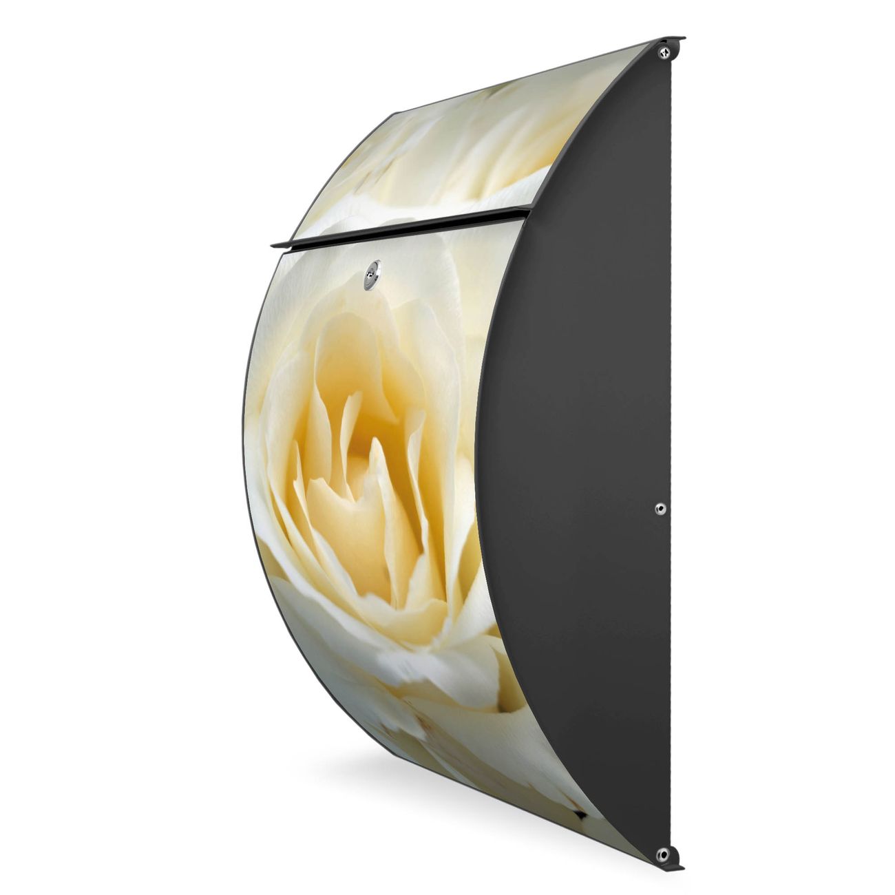 Der Burg Wächter Design Briefkasten mit Motiv White Roses bietet Ihnen mit seinem Fassungsvermögen genügend Platz auch für große A4 Sendungen. Auf Wunsch können Sie bei uns den passenden Ständer kaufen und so aus dem Wandbriefkasten einen Standbriefkasten machen.