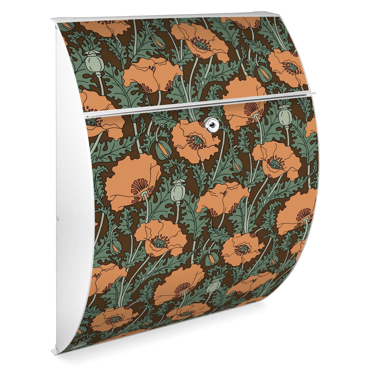 Der weiße Burg Wächter Design Briefkasten mit Motiv Zeichnung Mohn bietet Ihnen mit seinem Fassungsvermögen genügend Platz auch für große A4 Sendungen. Auf Wunsch können Sie bei uns auch den passenden Ständer kaufen und so aus dem Wandbriefkasten einen Standbriefkasten machen.