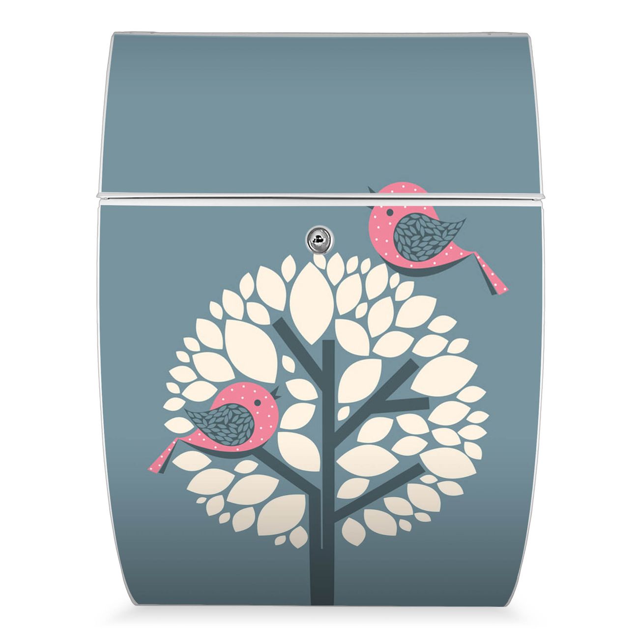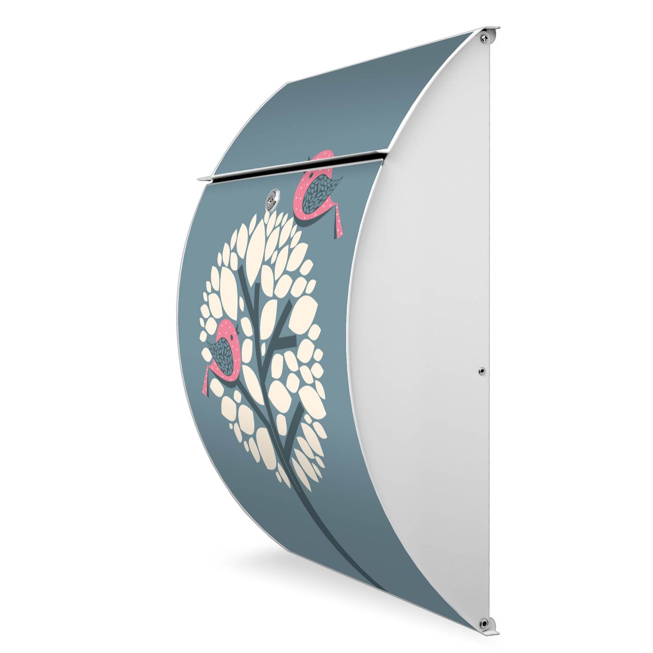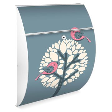Der weiße Burg Wächter Design Briefkasten mit Motiv Zwei Rosa Vögel bietet Ihnen mit seinem Fassungsvermögen genügend Platz auch für große A4 Sendungen. Auf Wunsch können Sie bei uns auch den passenden Ständer kaufen und so aus dem Wandbriefkasten einen Standbriefkasten machen.