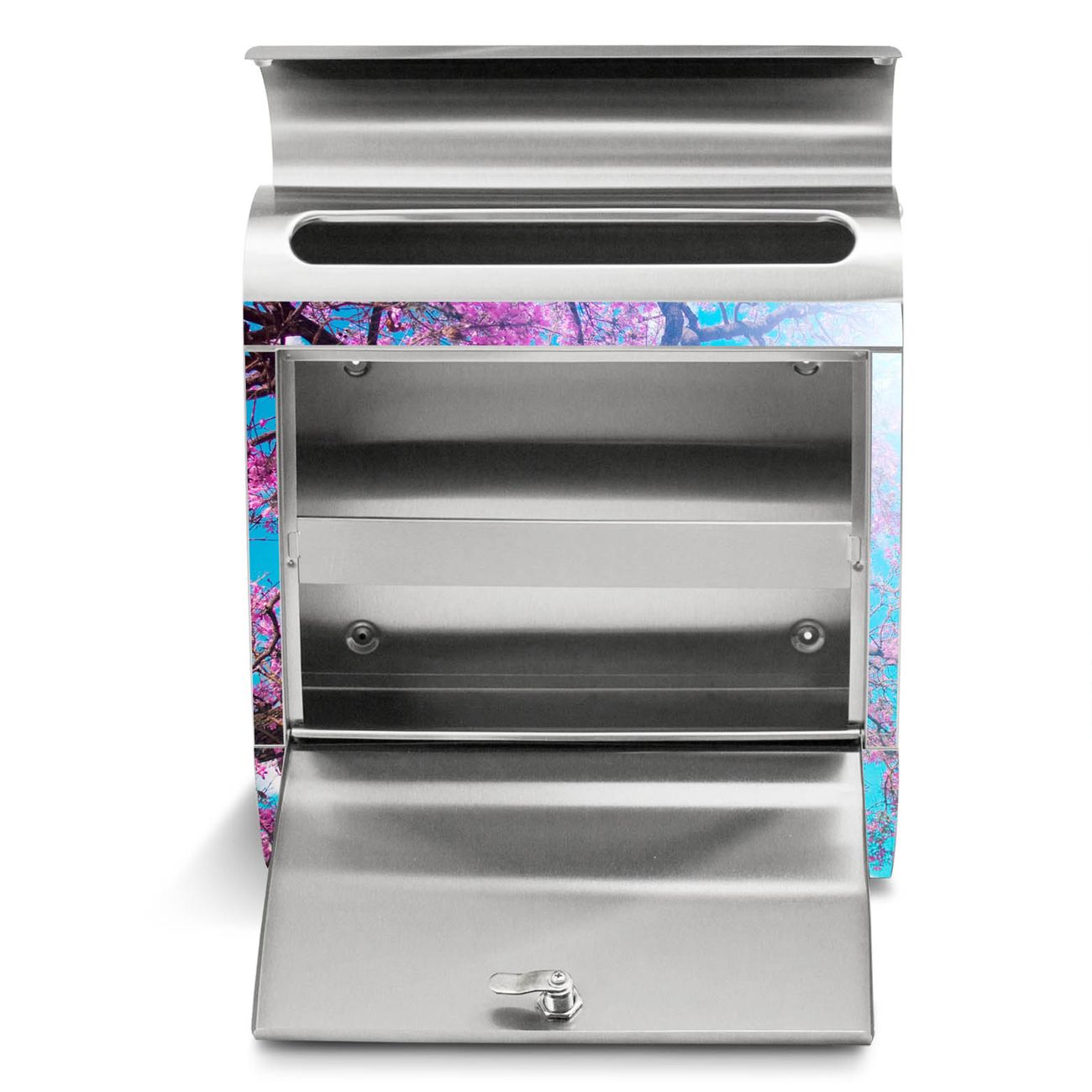 Der Motivstandbriefkasten hat ein sehr ansprechendes und ausgefallenes Design, damit entlocken Sie Ihren Nachbarn und dem Postboten ein Lächeln. Heben Sie Sich ab von der tristen grauen Masse, ohne auf Funktionalität zu verzichten. Der Briefkasten besteht aus hochwertigem 18/0 Edelstahl und die Wetter- und UV-resistenten Folie mit Baumkrone 2 Motiv ist zusätzlich mit einem Schutzlaminat überzogen. Der Standbriefkasten wird mit Montagematerial und zwei Schlüsseln geliefert.