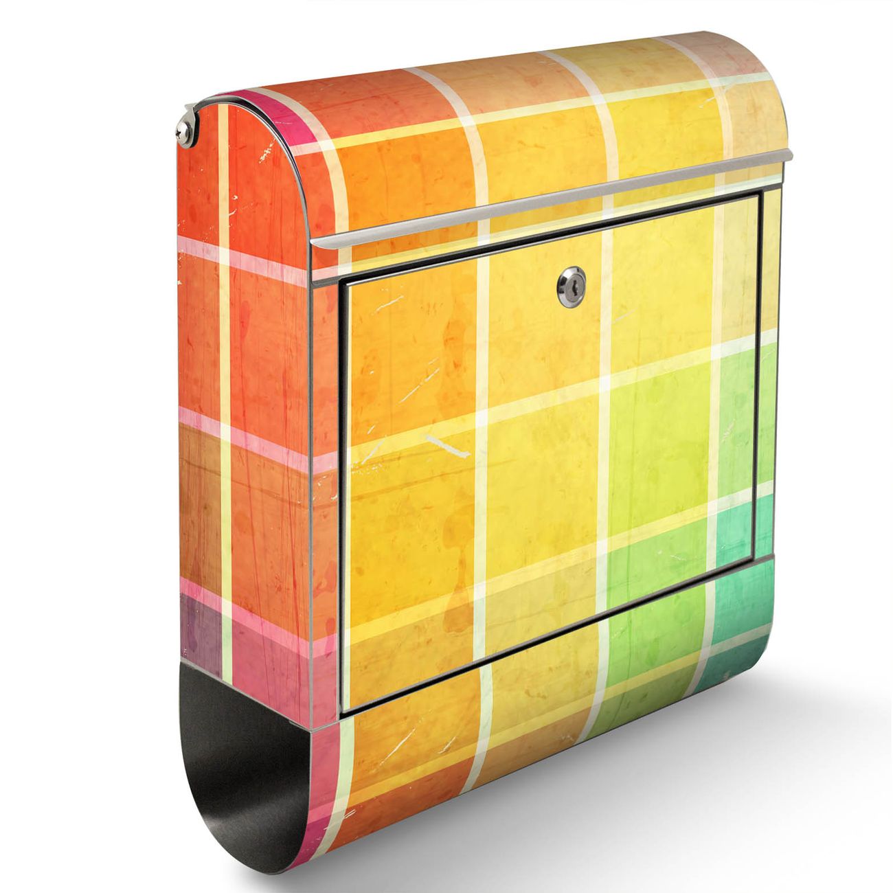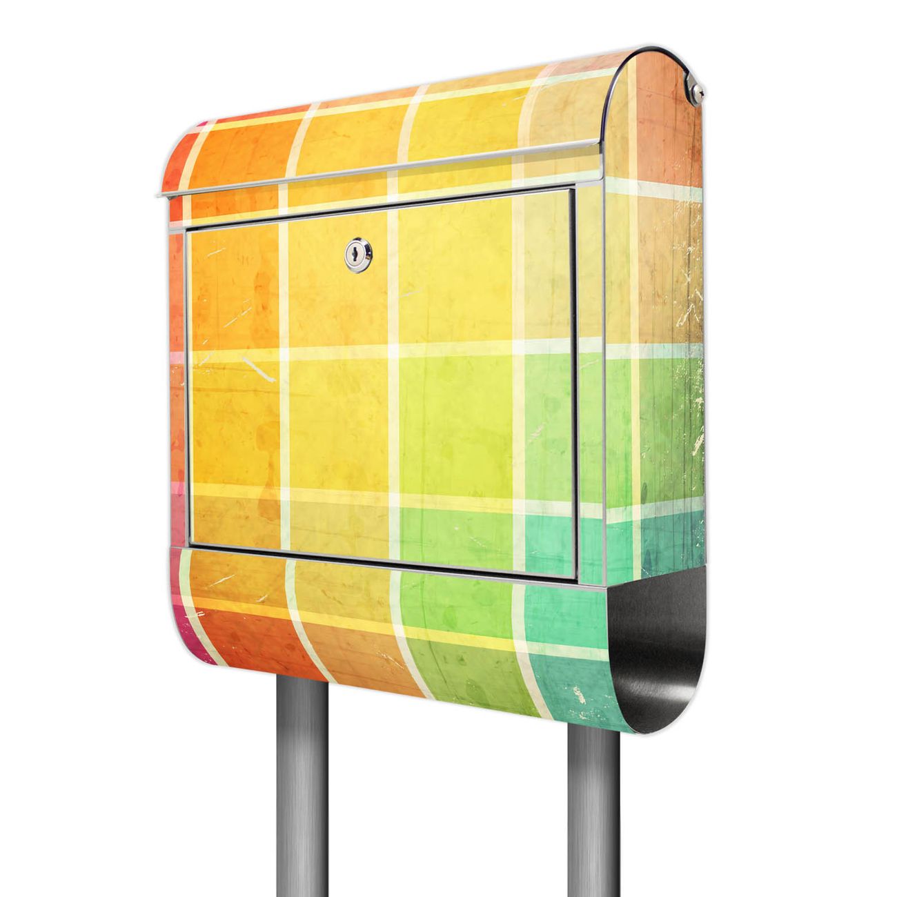 Der Motivstandbriefkasten hat ein sehr ansprechendes und ausgefallenes Design, damit entlocken Sie Ihren Nachbarn und dem Postboten ein Lächeln. Heben Sie Sich ab von der tristen grauen Masse, ohne auf Funktionalität zu verzichten. Der Briefkasten besteht aus hochwertigem 18/0 Edelstahl und die Wetter- und UV-resistenten Folie mit Bunte Glasbausteine Motiv ist zusätzlich mit einem Schutzlaminat überzogen. Der Standbriefkasten wird mit Montagematerial und zwei Schlüsseln geliefert.