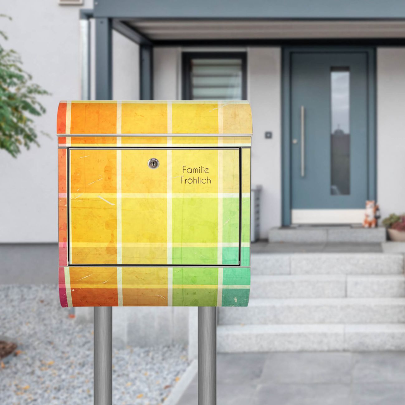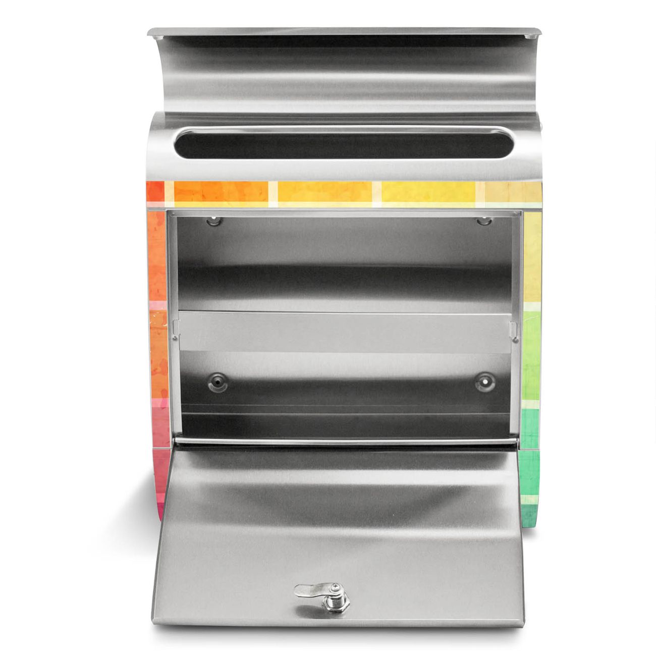 Der Motivstandbriefkasten hat ein sehr ansprechendes und ausgefallenes Design, damit entlocken Sie Ihren Nachbarn und dem Postboten ein Lächeln. Heben Sie Sich ab von der tristen grauen Masse, ohne auf Funktionalität zu verzichten. Der Briefkasten besteht aus hochwertigem 18/0 Edelstahl und die Wetter- und UV-resistenten Folie mit Bunte Glasbausteine Motiv ist zusätzlich mit einem Schutzlaminat überzogen. Der Standbriefkasten wird mit Montagematerial und zwei Schlüsseln geliefert.
