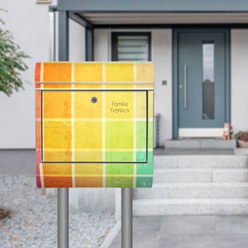 Der banjado Edelstahl Standbriefkasten mit Motiv Bunte Glasbausteine und eigenem Wunschtext bietet Ihnen mit seinem Fassungsvermögen genügend Platz auch für große A4 Sendungen. Das integrierte Zeitungsfach eignet sich hervorragend, um unkompliziert die Tageszeitung zu fassen.