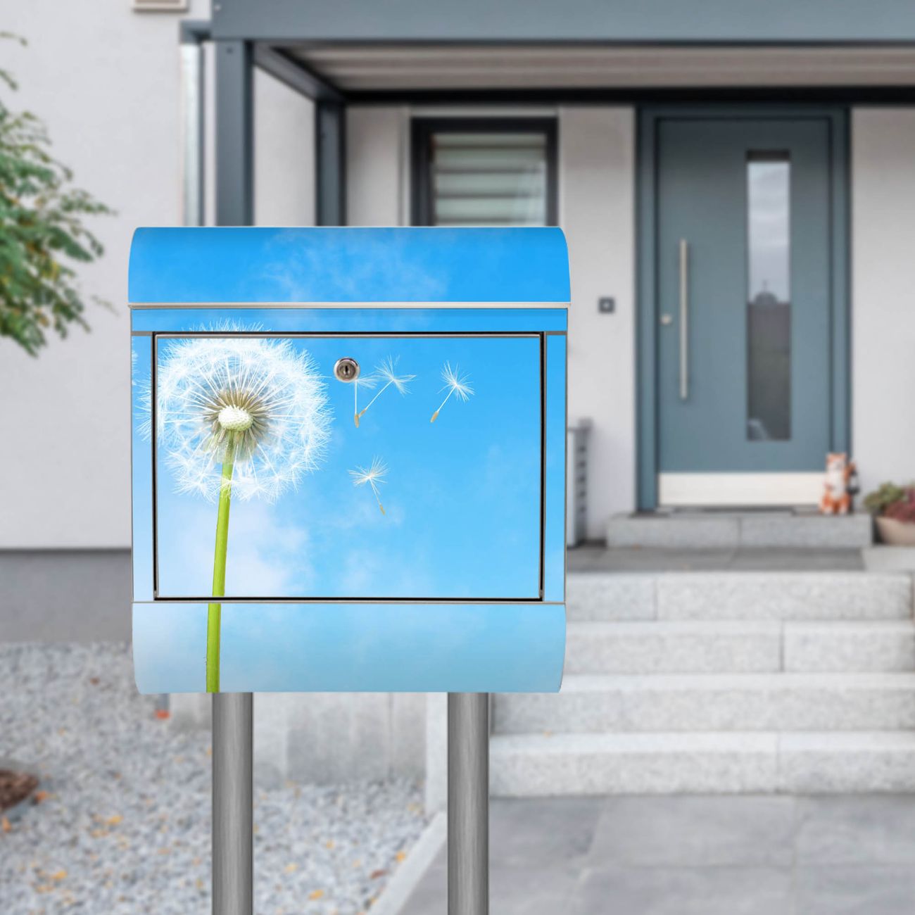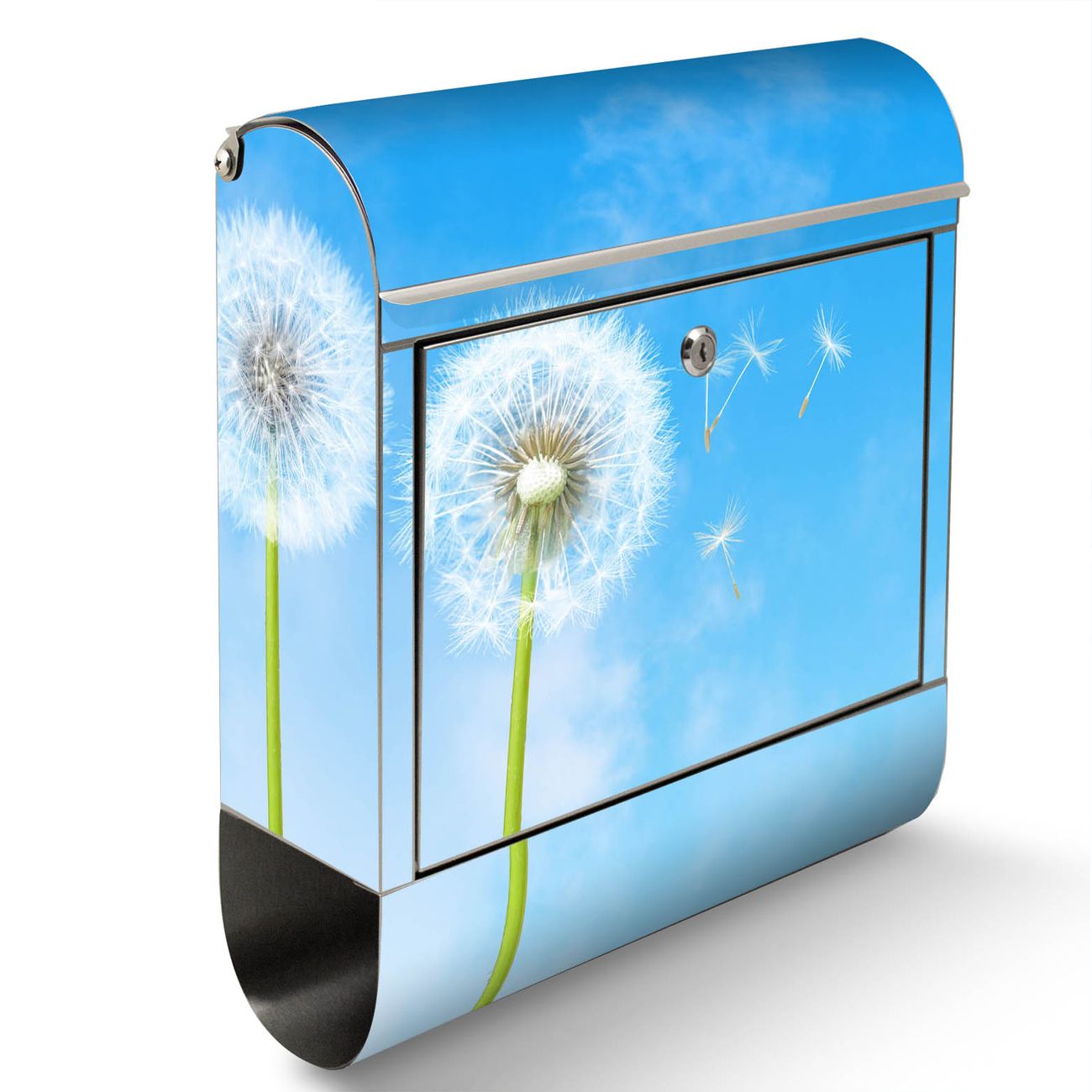 Der Motivstandbriefkasten hat ein sehr ansprechendes und ausgefallenes Design, damit entlocken Sie Ihren Nachbarn und dem Postboten ein Lächeln. Heben Sie Sich ab von der tristen grauen Masse, ohne auf Funktionalität zu verzichten. Der Briefkasten besteht aus hochwertigem 18/0 Edelstahl und die Wetter- und UV-resistenten Folie mit Dandelion Motiv ist zusätzlich mit einem Schutzlaminat überzogen. Der Standbriefkasten wird mit Montagematerial und zwei Schlüsseln geliefert.