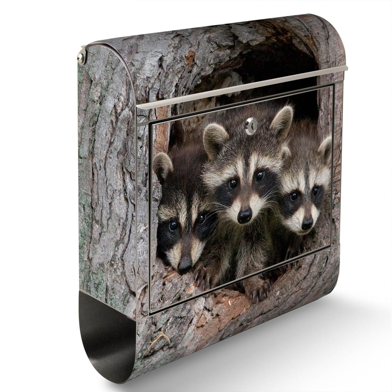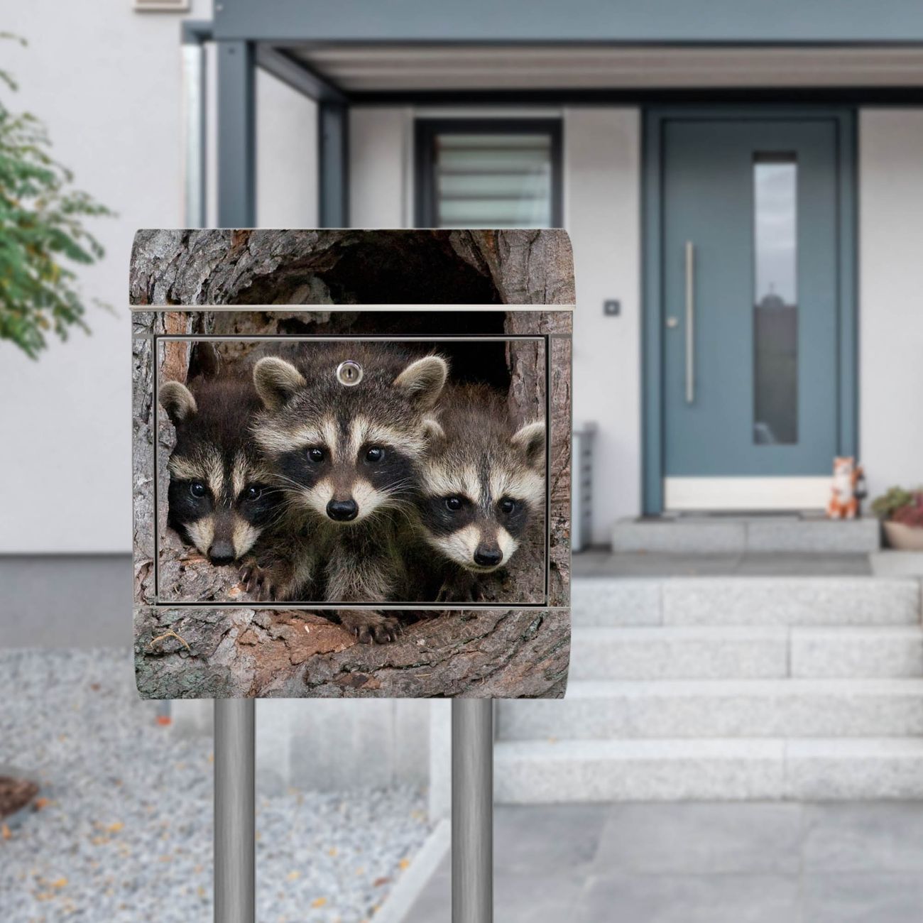 Der banjado Edelstahl Standbriefkasten mit Motiv Drei Waschbären bietet Ihnen mit seinem Fassungsvermögen genügend Platz auch für große A4 Sendungen. Das integrierte Zeitungsfach eignet sich hervorragend, um unkompliziert die Tageszeitung zu fassen.