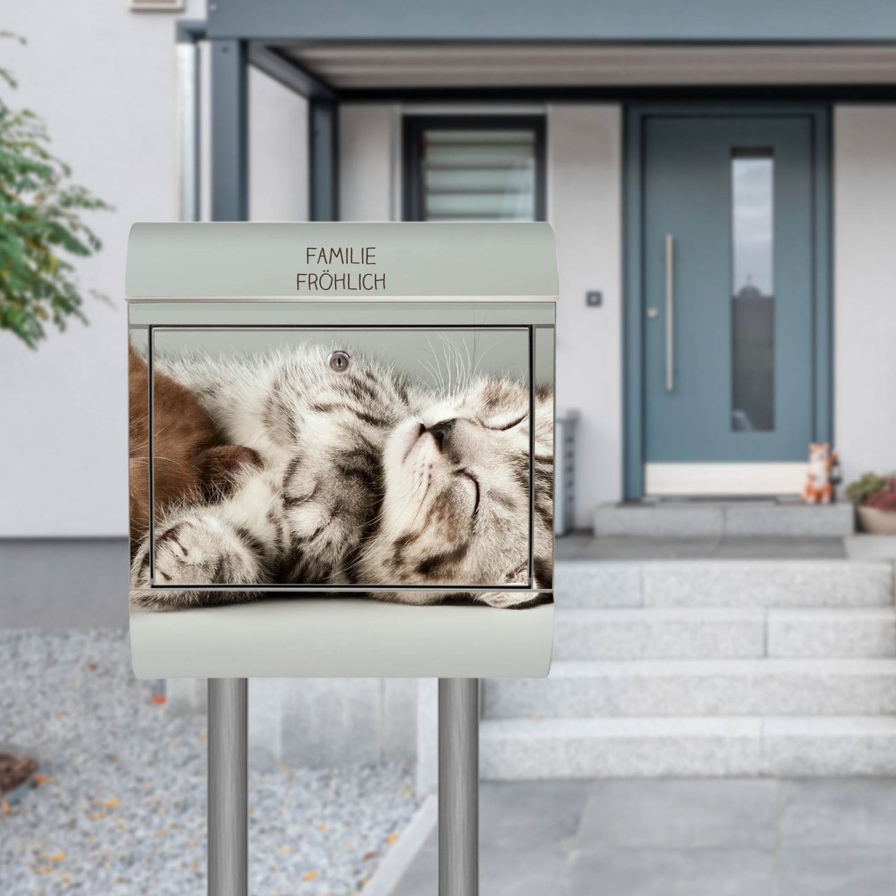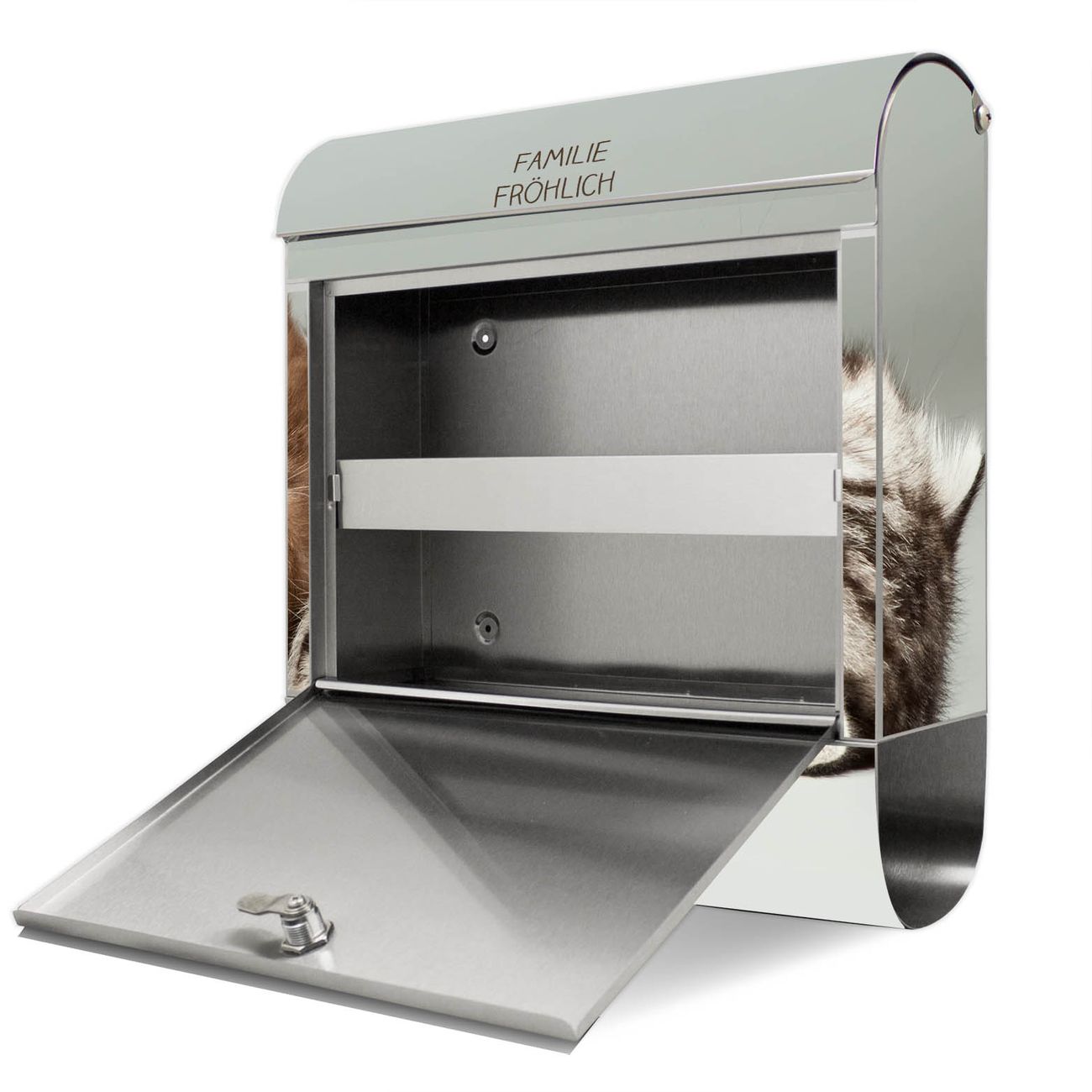Der banjado Edelstahl Standbriefkasten mit Motiv Mini Und Jerry und eigenem Wunschtext bietet Ihnen mit seinem Fassungsvermögen genügend Platz auch für große A4 Sendungen. Das integrierte Zeitungsfach eignet sich hervorragend, um unkompliziert die Tageszeitung zu fassen.