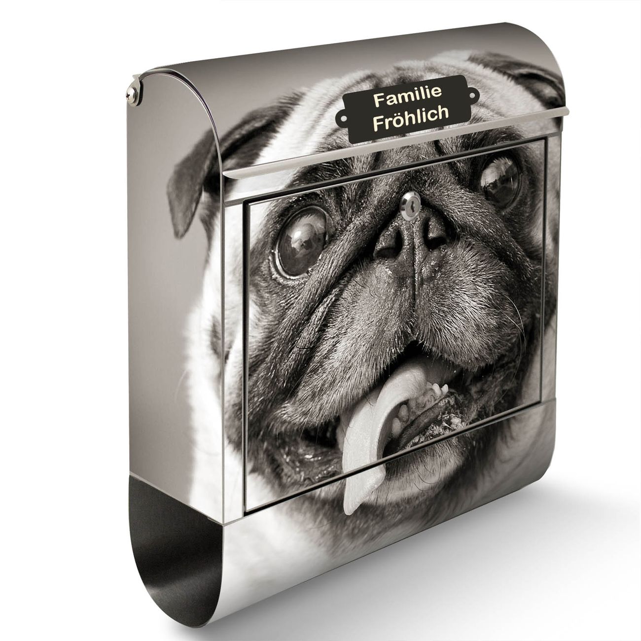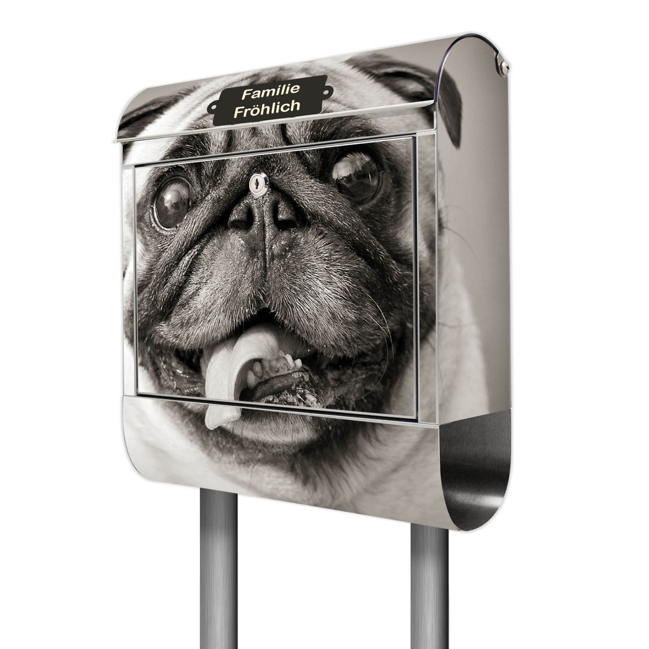 Standbriefkasten Edelstahl Mops Porträt