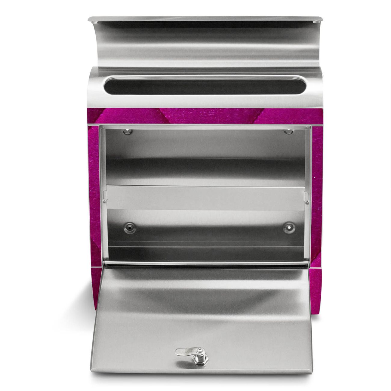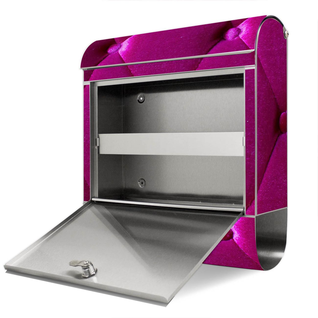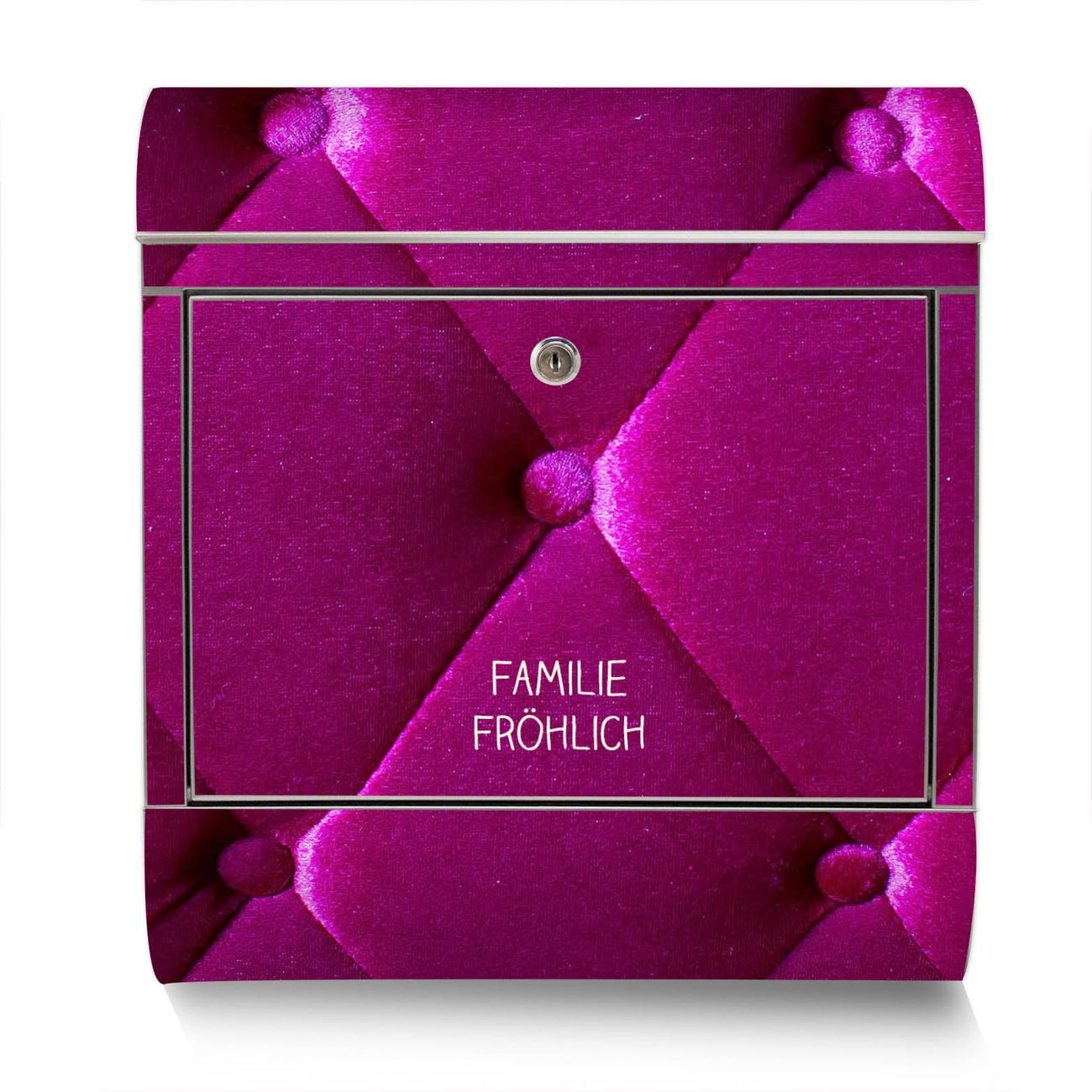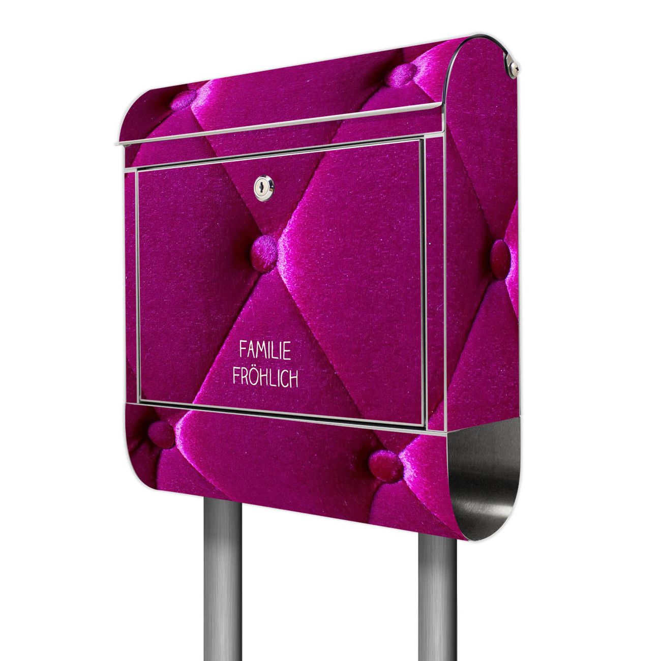 Der banjado Edelstahl Standbriefkasten mit Motiv Pink Polster und eigenem Wunschtext bietet Ihnen mit seinem Fassungsvermögen genügend Platz auch für große A4 Sendungen. Das integrierte Zeitungsfach eignet sich hervorragend, um unkompliziert die Tageszeitung zu fassen.