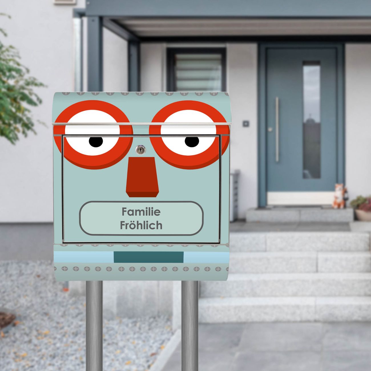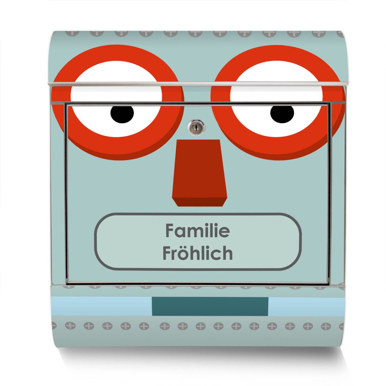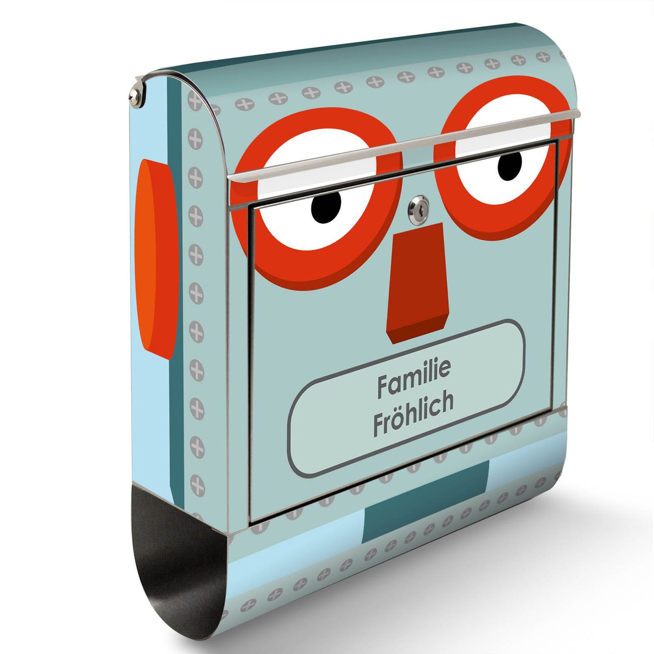 Der Motivstandbriefkasten hat ein sehr ansprechendes und ausgefallenes Design, damit entlocken Sie Ihren Nachbarn und dem Postboten ein Lächeln. Heben Sie Sich ab von der tristen grauen Masse, ohne auf Funktionalität zu verzichten. Der Briefkasten besteht aus hochwertigem 18/0 Edelstahl und die Wetter- und UV-resistenten Folie mit Shocked Robot Motiv ist zusätzlich mit einem Schutzlaminat überzogen. Der Standbriefkasten wird mit Montagematerial und zwei Schlüsseln geliefert.
