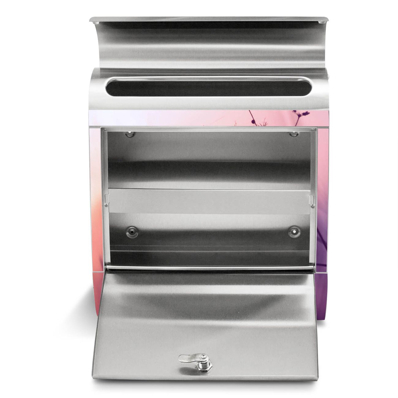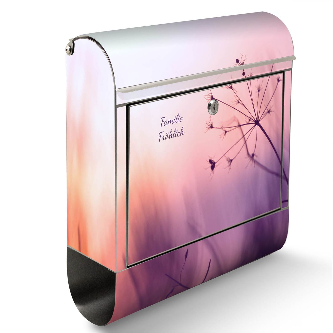 Der banjado Edelstahl Standbriefkasten mit Motiv Sommergras und eigenem Wunschtext bietet Ihnen mit seinem Fassungsvermögen genügend Platz auch für große A4 Sendungen. Das integrierte Zeitungsfach eignet sich hervorragend, um unkompliziert die Tageszeitung zu fassen.