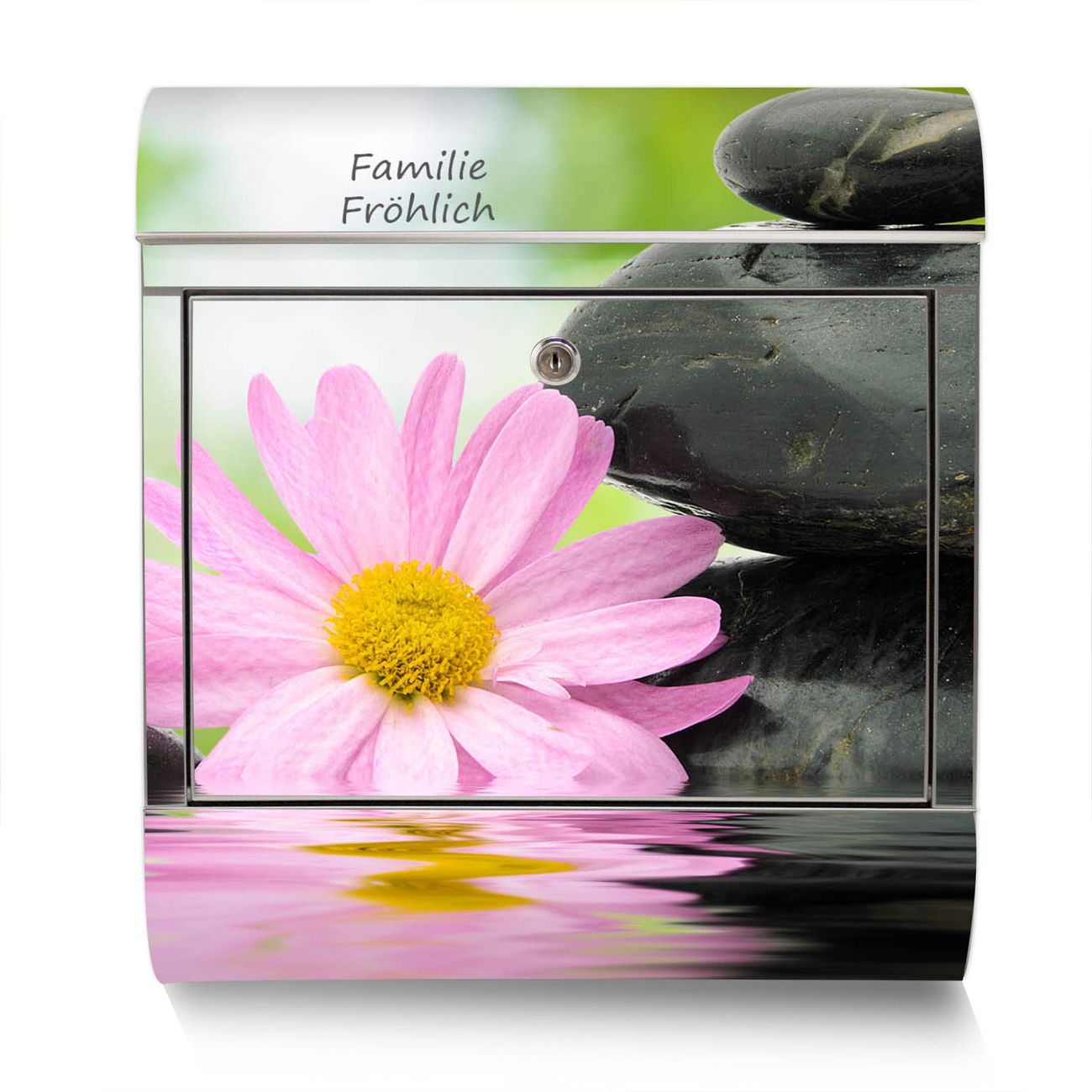 Der Motivstandbriefkasten hat ein sehr ansprechendes und ausgefallenes Design, damit entlocken Sie Ihren Nachbarn und dem Postboten ein Lächeln. Heben Sie Sich ab von der tristen grauen Masse, ohne auf Funktionalität zu verzichten. Der Briefkasten besteht aus hochwertigem 18/0 Edelstahl und die Wetter- und UV-resistenten Folie mit Steine & Relax 2 Motiv ist zusätzlich mit einem Schutzlaminat überzogen. Der Standbriefkasten wird mit Montagematerial und zwei Schlüsseln geliefert.