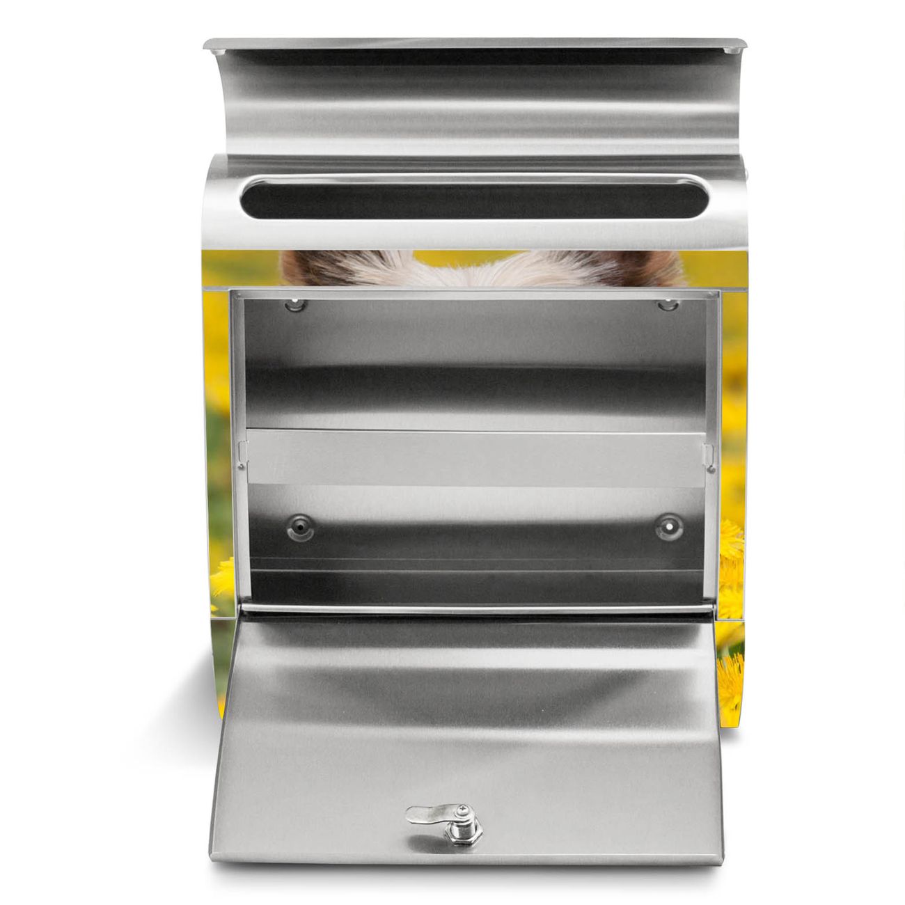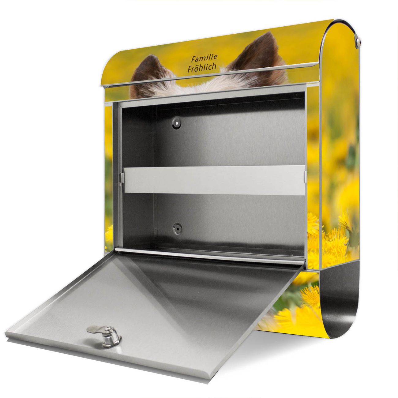 Der banjado Edelstahl Standbriefkasten mit Motiv Tiffy und eigenem Wunschtext bietet Ihnen mit seinem Fassungsvermögen genügend Platz auch für große A4 Sendungen. Das integrierte Zeitungsfach eignet sich hervorragend, um unkompliziert die Tageszeitung zu fassen.