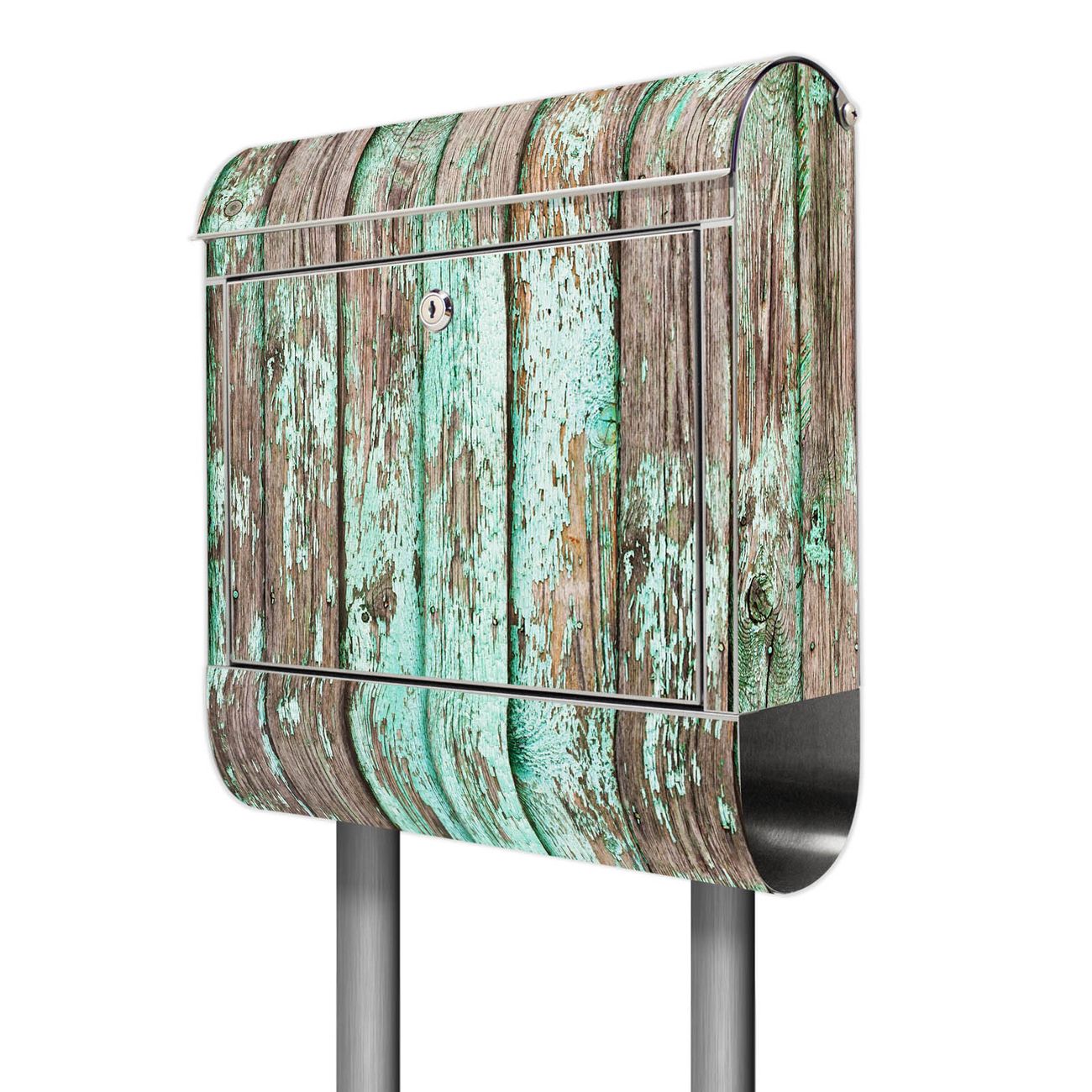 Der Motivstandbriefkasten hat ein sehr ansprechendes und ausgefallenes Design, damit entlocken Sie Ihren Nachbarn und dem Postboten ein Lächeln. Heben Sie Sich ab von der tristen grauen Masse, ohne auf Funktionalität zu verzichten. Der Briefkasten besteht aus hochwertigem 18/0 Edelstahl und die Wetter- und UV-resistenten Folie mit Verwittertes Holz Motiv ist zusätzlich mit einem Schutzlaminat überzogen. Der Standbriefkasten wird mit Montagematerial und zwei Schlüsseln geliefert.