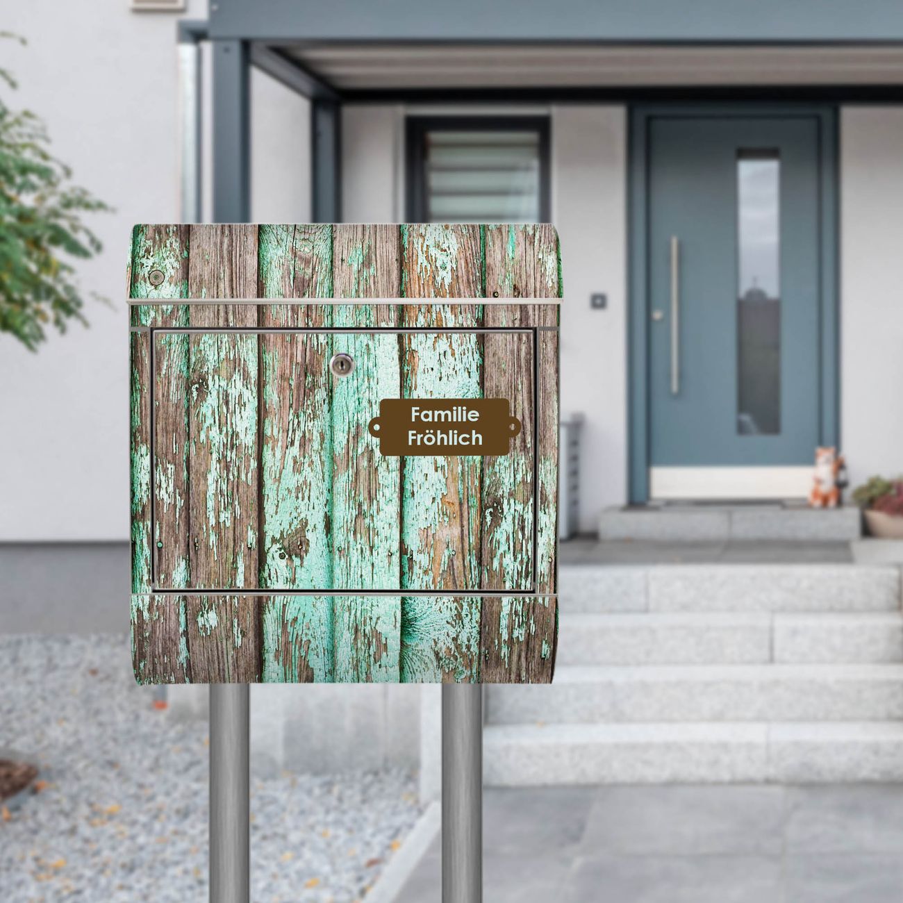Der Motivstandbriefkasten hat ein sehr ansprechendes und ausgefallenes Design, damit entlocken Sie Ihren Nachbarn und dem Postboten ein Lächeln. Heben Sie Sich ab von der tristen grauen Masse, ohne auf Funktionalität zu verzichten. Der Briefkasten besteht aus hochwertigem 18/0 Edelstahl und die Wetter- und UV-resistenten Folie mit Verwittertes Holz Motiv ist zusätzlich mit einem Schutzlaminat überzogen. Der Standbriefkasten wird mit Montagematerial und zwei Schlüsseln geliefert.