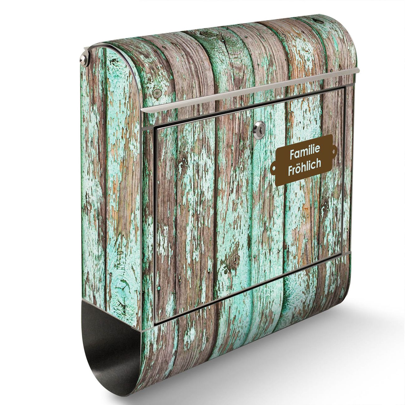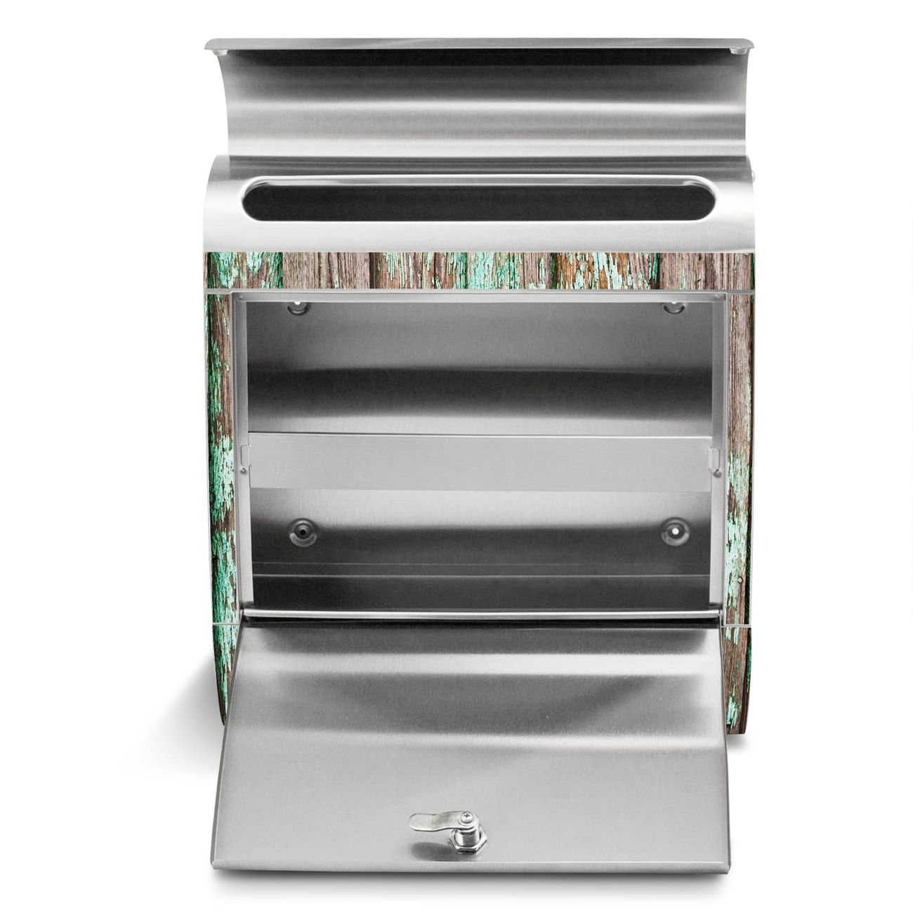 Der banjado Edelstahl Standbriefkasten mit Motiv Verwittertes Holz und eigenem Wunschtext bietet Ihnen mit seinem Fassungsvermögen genügend Platz auch für große A4 Sendungen. Das integrierte Zeitungsfach eignet sich hervorragend, um unkompliziert die Tageszeitung zu fassen.
